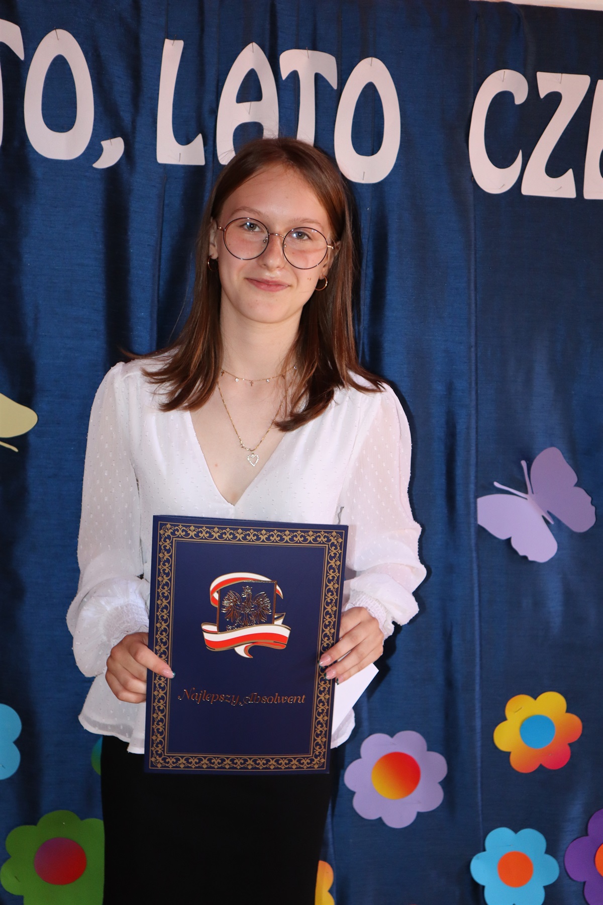 Tytuł Najlepszego Absolwenta Szkoły Podstawowej w Srocku w roku szkolnym 2021/2022 oraz jednorazowe stypendium pieniężne na zakup pomocy naukowych zdobyła Karolina Ryś. Stypendium wręczyła prezes Stowarzyszenia „Szkoła w Srocku” Sylwia Dębska.