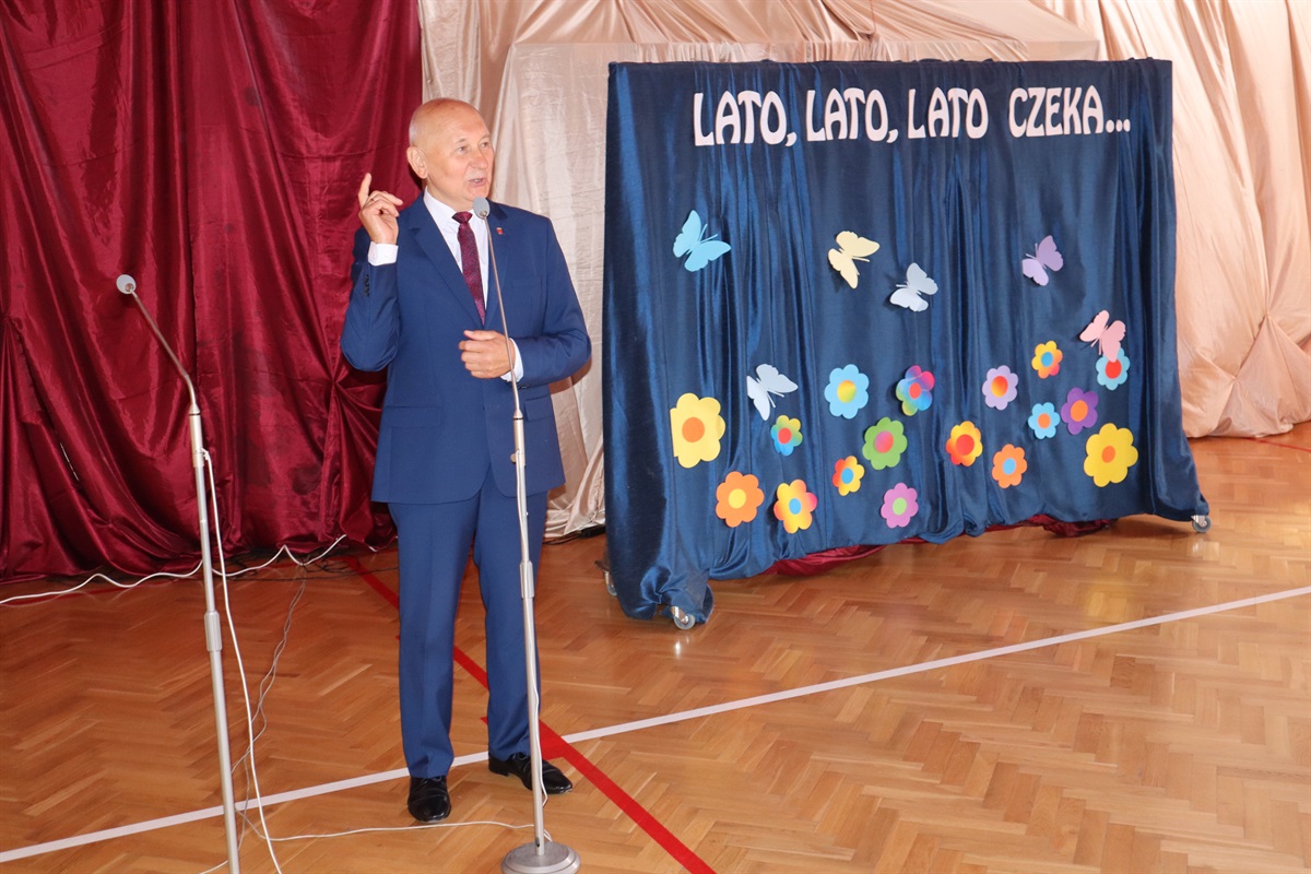 - Na tę uroczystość do naszej szkoły przybyli zaproszeni goście: wójt gminy Marceli Piekarek, ksiądz proboszcz Mariusz Staszczyk, radni Henryk Jończyk i Jacek Kozakowski oraz związane na co dzień ze szkołą panie Olga Małgorzaciak - przewodnicząca Rady Rodziców, a także Sylwia Dębska - prezes Stowarzyszenia Szkoła w Srocku. Wszyscy gratulowali uczniom wyników w nauce, wyrażali radość z powodu trwającej rozbudowy szkoły i życzyli przyjemnego, efektywnego, bezpiecznego wypoczynku podczas nadchodzących wakacji. Podziękowania za cierpliwość i cały rok pracy popłynęły do nauczycieli, pracowników administracji i obsługi, a także rodziców, którzy aktywnie uczestniczyli w procesie nauki zdalnej - informuje Iwona Pałygiewicz, dyrektor szkoły, która wraz z wychowawcami poszczególnych klas wręczała nagrody uczniom wyróżnionym za wyniki w nauce i zachowaniu.