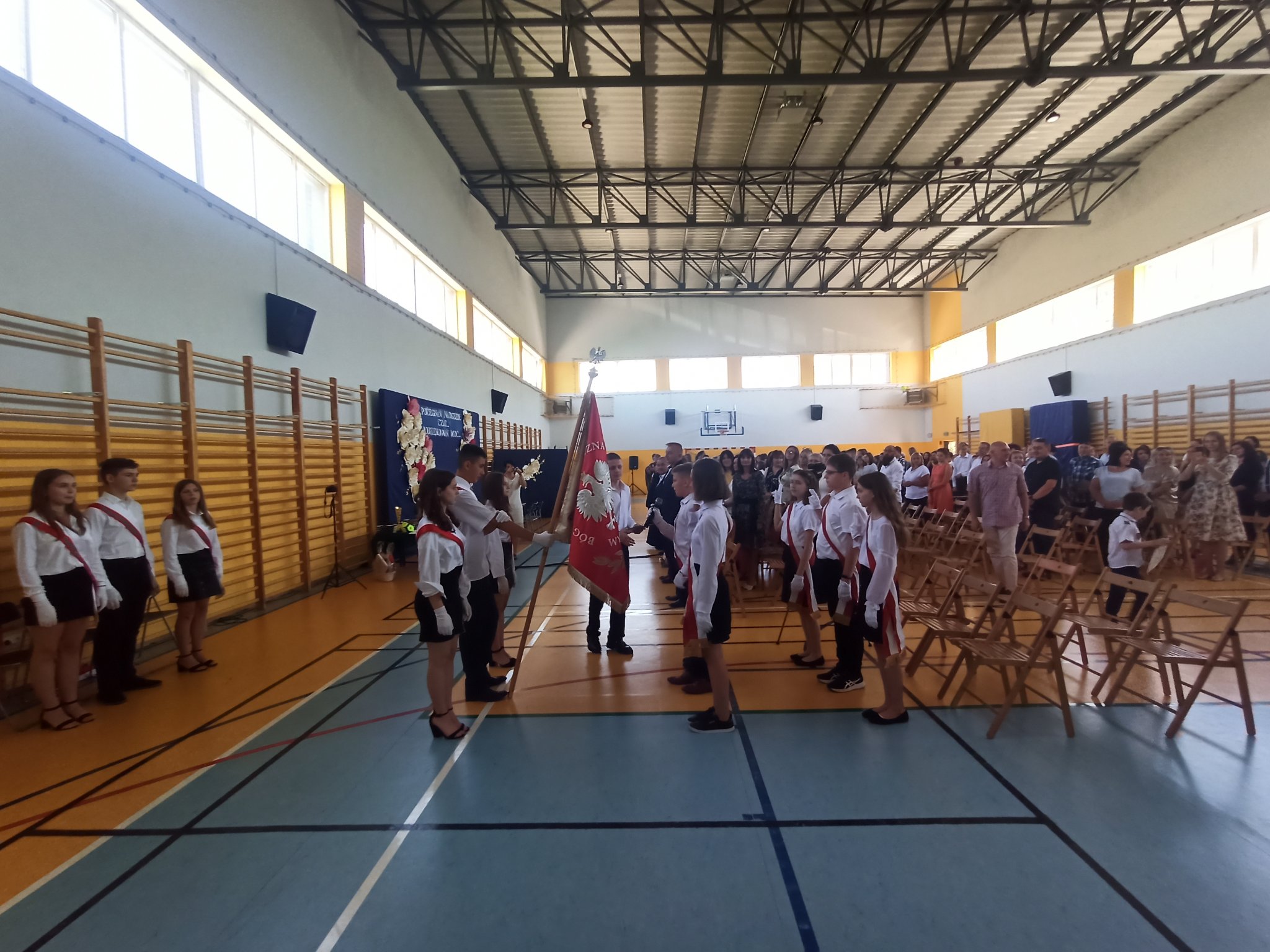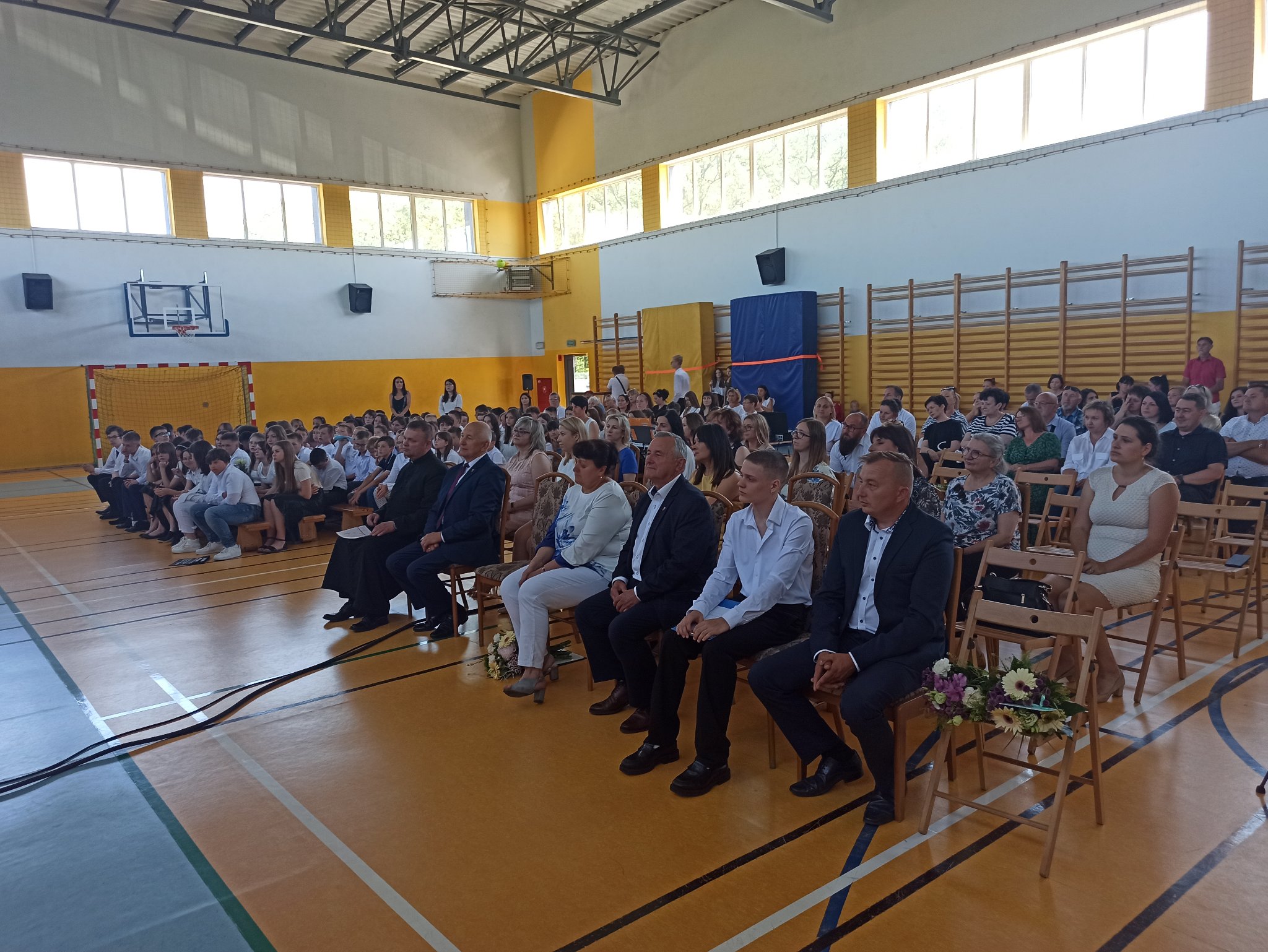 W piątek, 24 czerwca 2022 r. odbyła się uroczystość zakończenia roku szkolnego w Szkole Podstawowej im. Magarethy Kamprad w Jarostach. W sali gimnastycznej zebrali się absolwenci, rodzice, nauczyciele i uczniowie klas IV-VII, którzy żegnali swoich starszych kolegów oraz zaproszeni goście: Marceli Piekarek – wójt gminy Moszczenica, ksiądz Robert Nowak - proboszcz tutejszej parafii, Waldemar Banaszczyk – radny Rady Gminy Moszczenica, Marcin Adamczyk – przewodniczący Rady Rodziców szkoły, Beata Dziadczyk – prezes Fundacji Oświatowej „Jarosty.