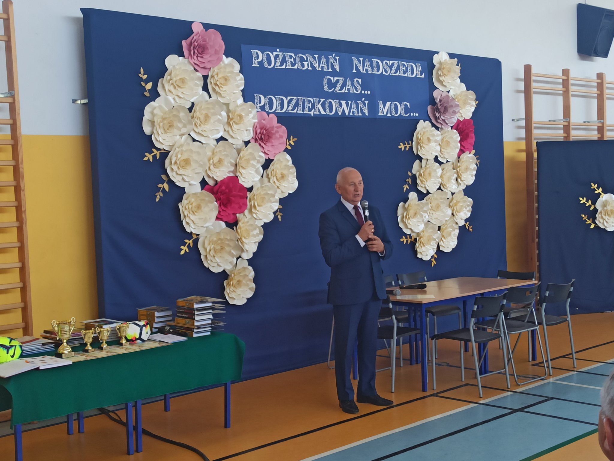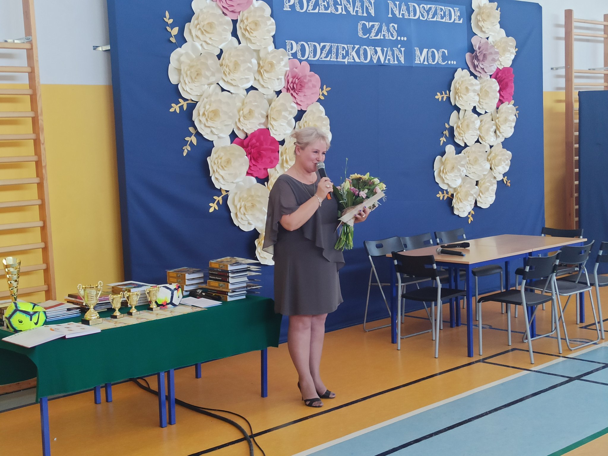 Dyrektor placówki Bożena Nowak – Justyna podziękowała wszystkim za ten trudny rok. Skierowała słowa uznania do pedagogów i pracowników szkoły, uczniów, rodziców, władz gminy, sponsorów i przyjaciół wyrażając wdzięczność za kreatywność, a także pełne zaangażowania oraz profesjonalne podejście do zupełnie nieoczekiwanych, nowych wyzwań szkolnej rzeczywistości.
