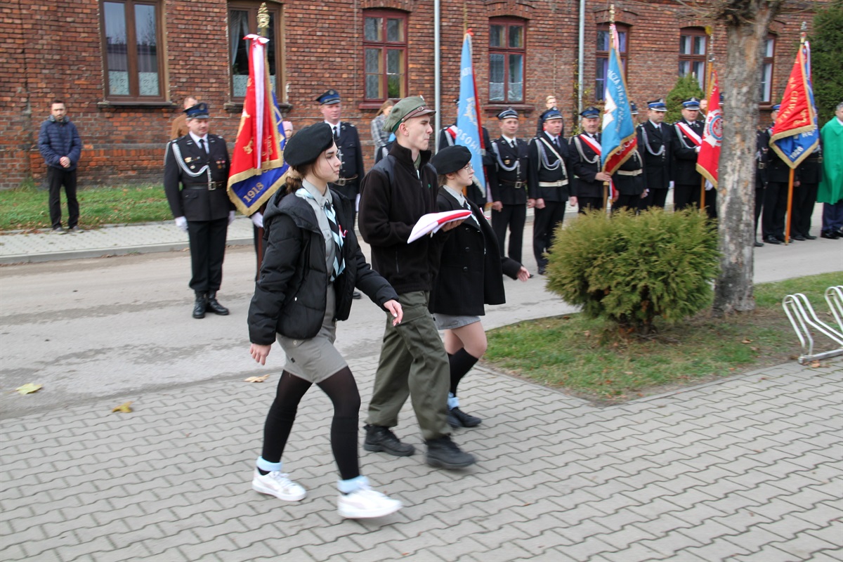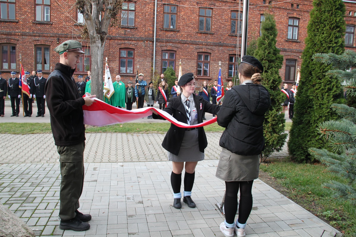 Dokładnie o 11.11 odśpiewano Mazurka Dąbrowskiego i wciągnięto na maszt flagę państwową. - Naród polski zawsze walczył o niepodległość, często oddawał to, co jest najcenniejsze - ludzie życie. Dlatego pamięć o naszej historii jest naszym obowiązkiem. Cieszmy się tą niepodległością i świętujmy ją wszyscy – przypomniał w okolicznościowym przemówieniu wójt Marceli Piekarek.