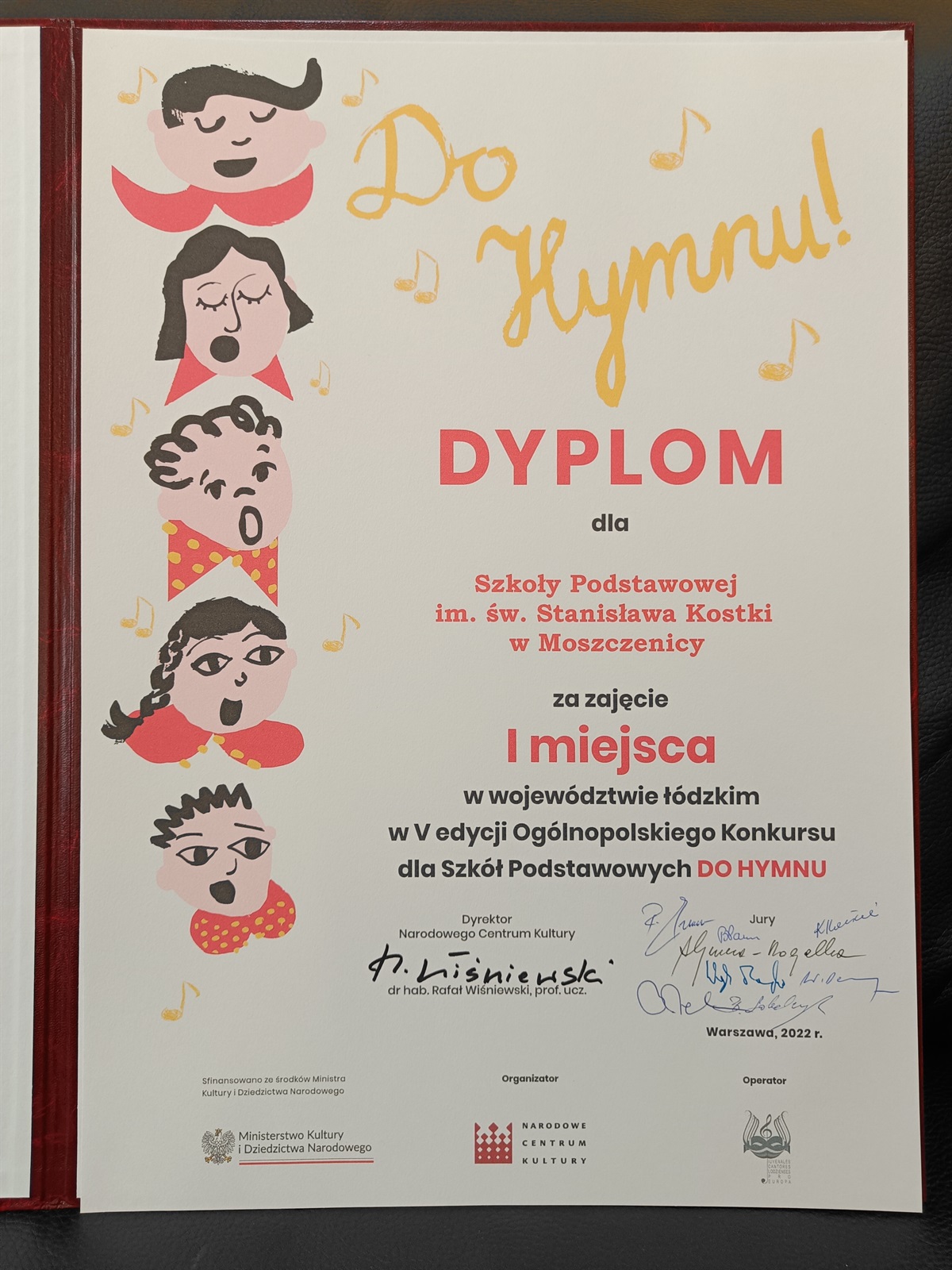 Szkoła Podstawowa im. św. Stanisława Kostki zajęła I miejsce w województwie łódzkim w Ogólnopolskim Konkursie Szkół Podstawowych "Do Hymnu". O atrakcyjne nagrody walczyło w tym roku 270 szkół z całej Polski.