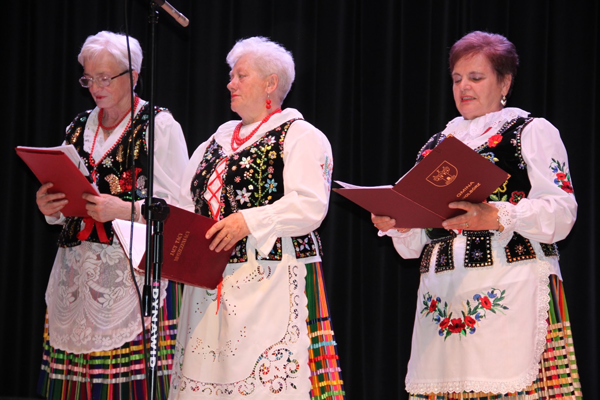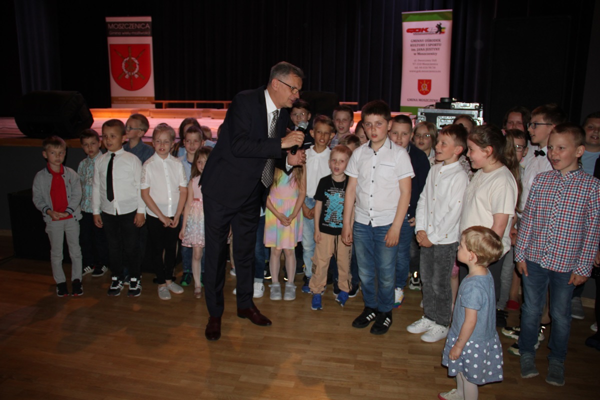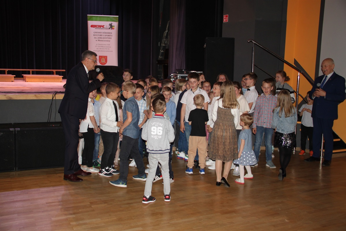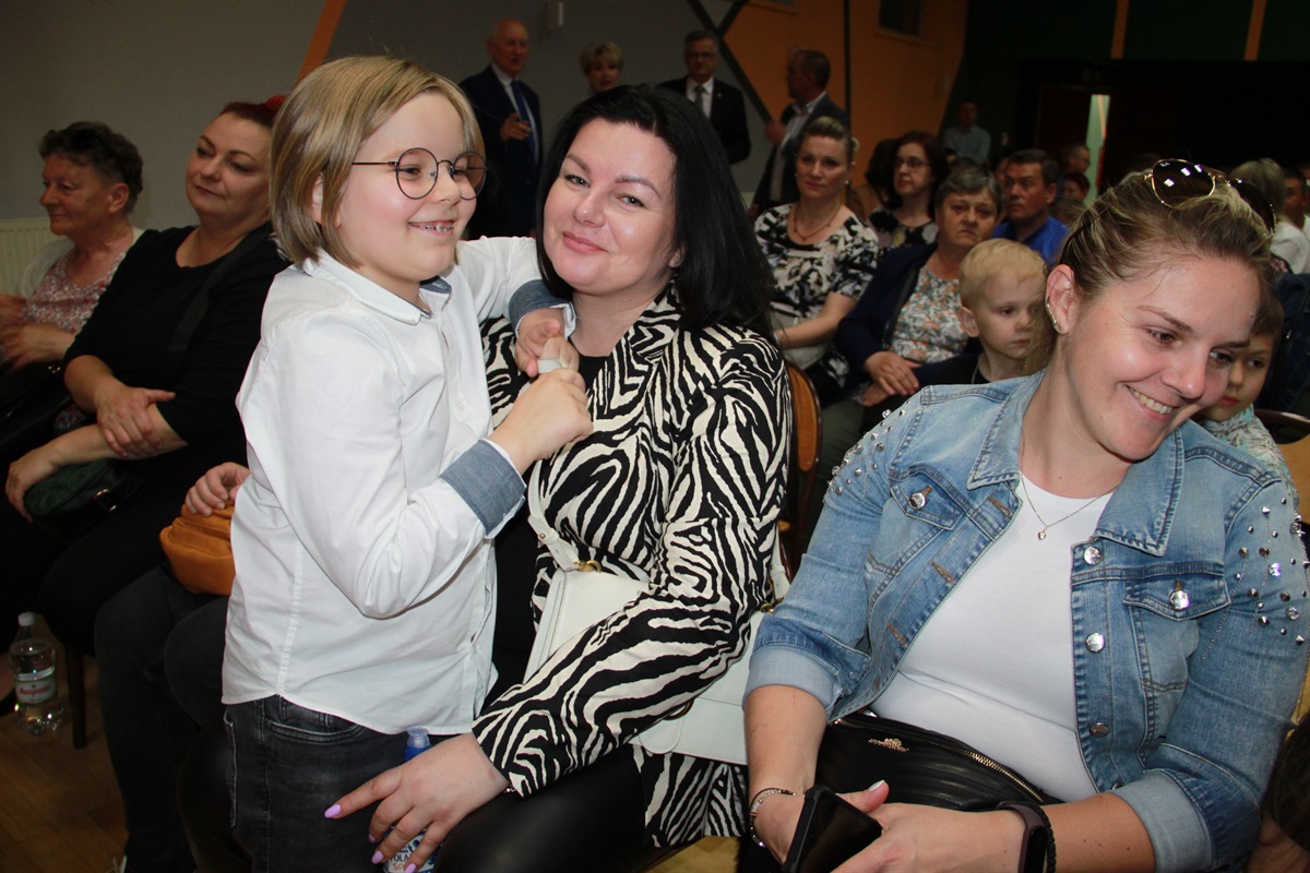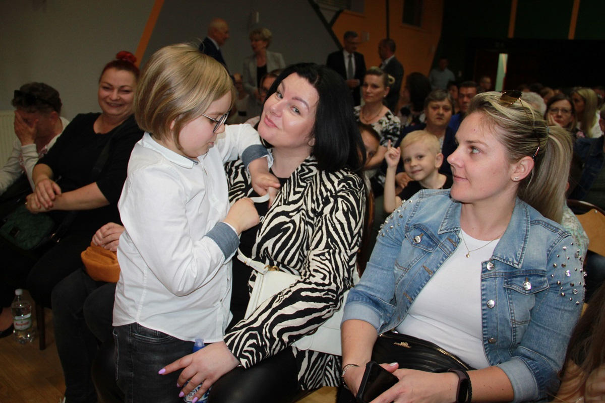 Życzenia mamom złożyli wspólnie wójt Marceli Piekarek oraz wicestarosta Dariusz Magacz, który zaprosił wszystkie dzieci do wspólnego odśpiewania "100 lat".