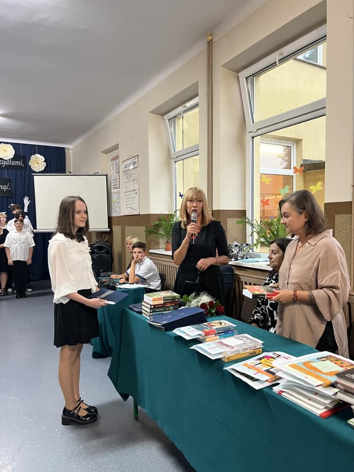 Z całą społecznością szkolną świętowali goście: Marceli Piekarek, wójt gminy Moszczenica, dziadkowie oraz rodzice, na czele z przedstawicielami Rady Rodziców. Ostatni dzień roku to czas podsumowań, gratulacji i podziękowań. Tym razem nie było inaczej. Pani dyrektor Aneta Piotrowska szczególne słowa podziękowań skierowała do kończących ósmą klasę uczniów naszej szkoły. Nie obyło się bez łez wzruszenia i burzliwych oklasków. Kolejne podziękowania były skierowane do rodziców, którzy na co dzień z wielkim oddaniem wspierają wszelkie inicjatywy szkolne.