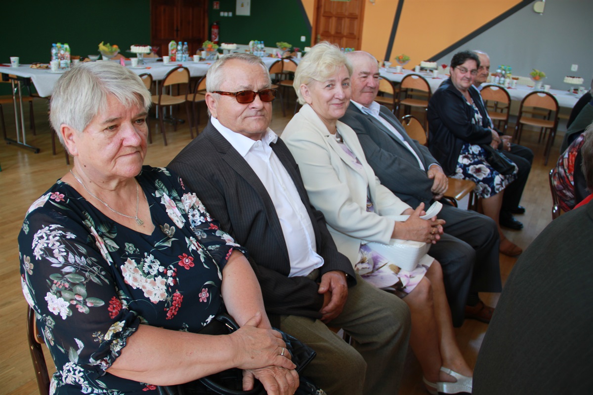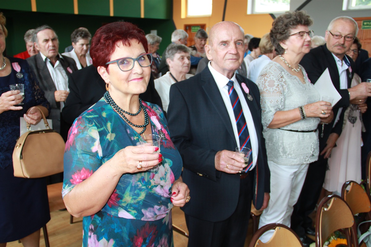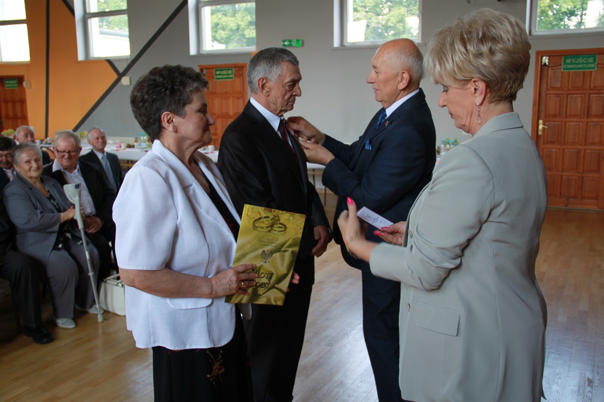 Spotkanie ze "złotymi" parami odbyło się w sali widowiskowej Gminnego Ośrodka Kultury i Sportu. Nie zabrakło gratulacji i życzeń, odśpiewano także tradycyjne "100 lat" i wzniesiono toast za wszystkich jubilatów.