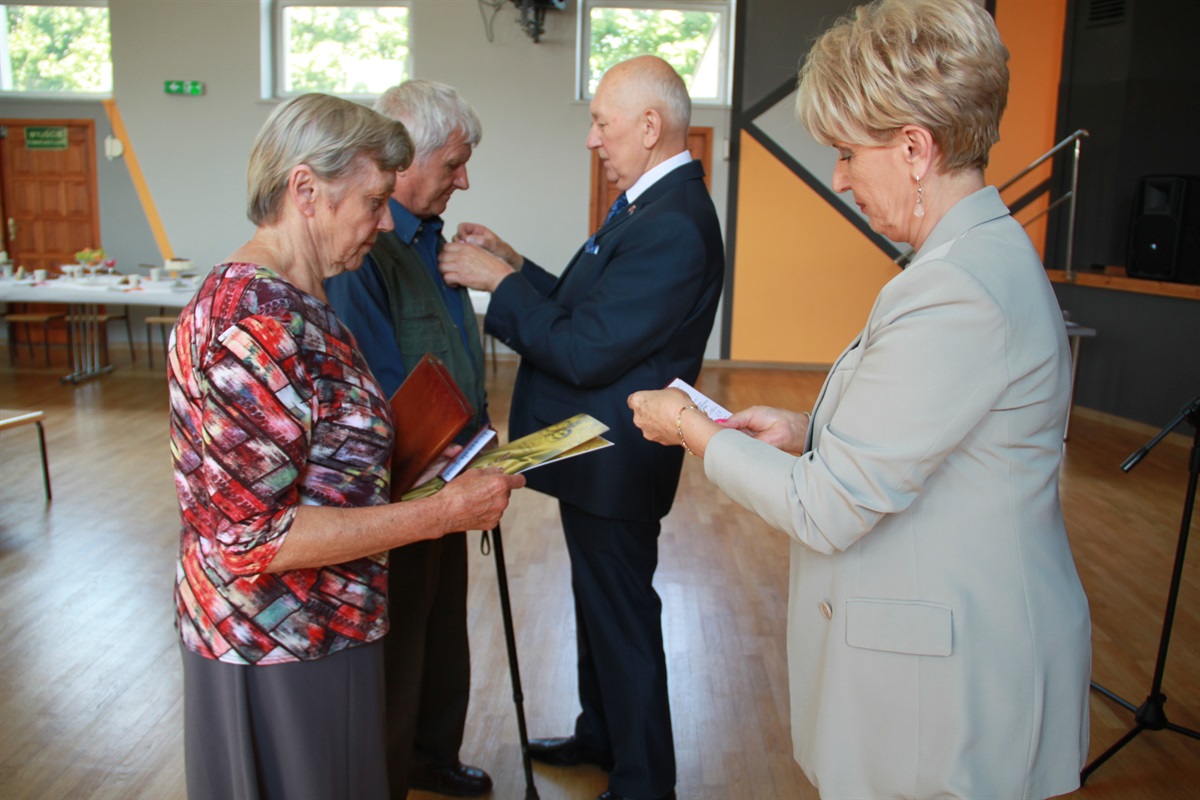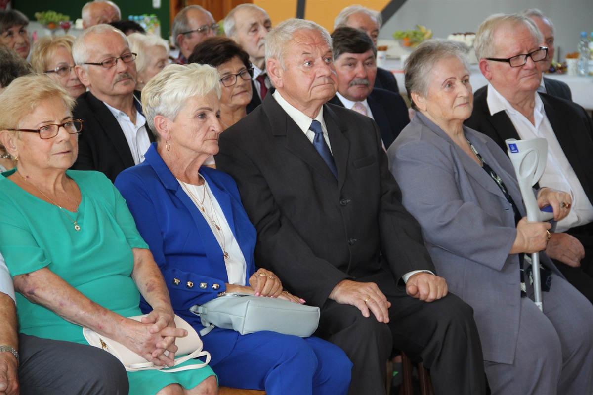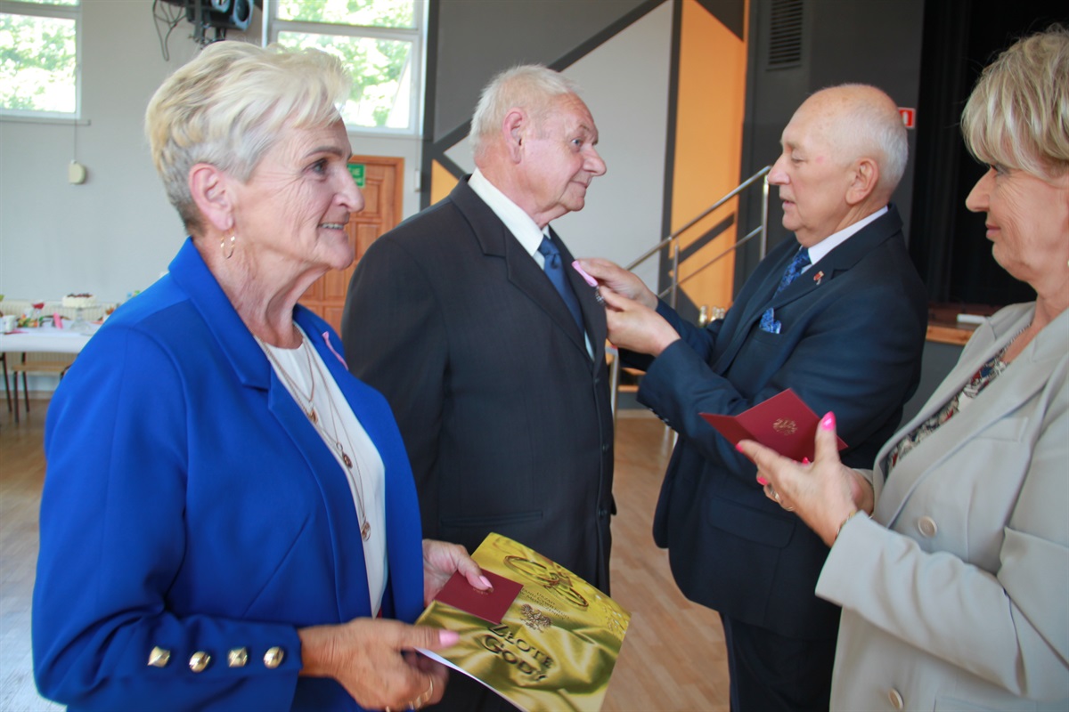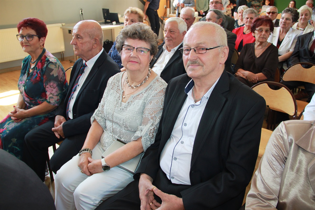Spotkanie ze "złotymi" parami odbyło się w sali widowiskowej Gminnego Ośrodka Kultury i Sportu. Nie zabrakło gratulacji i życzeń, odśpiewano także tradycyjne "100 lat" i wzniesiono toast za wszystkich jubilatów.