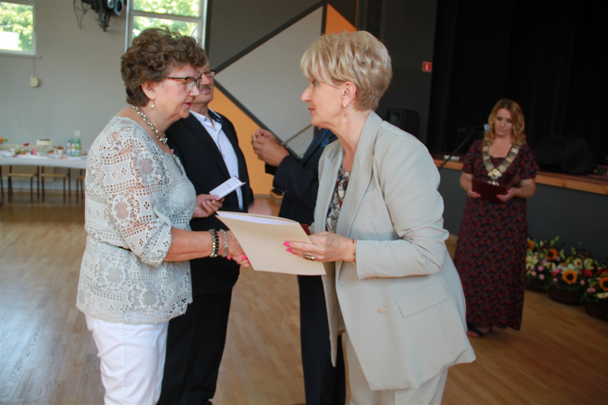 Życzenia złożyła też jubilatom przewodnicząca Rady Gminy Małgorzata Domańska.