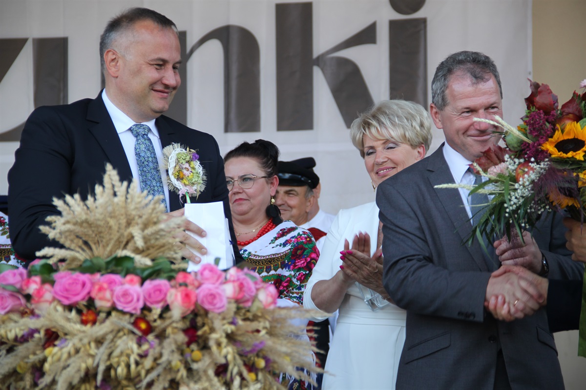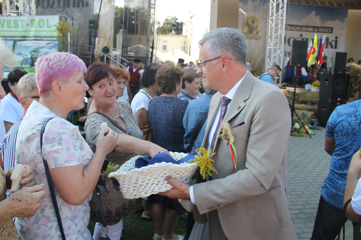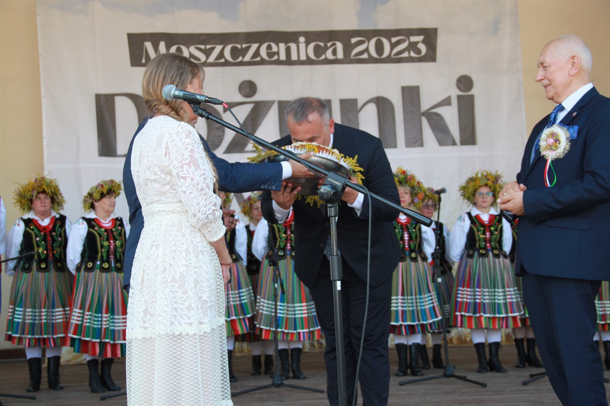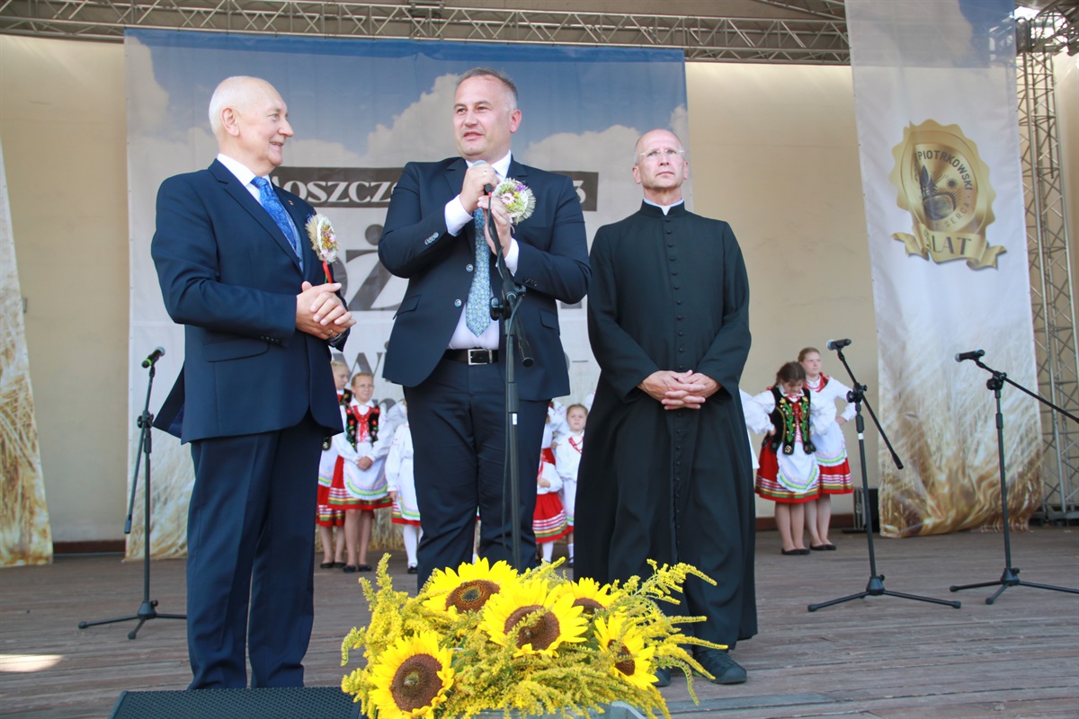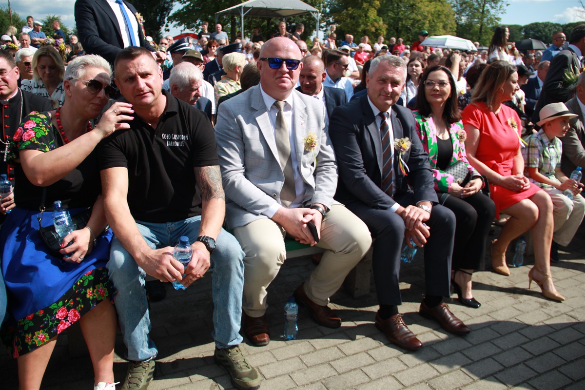 Starosta wraz przewodniczącym Rady Powiatu Bernardem Matyszewskim i wicestarostą Dariuszem Magaczem odebrali od Sołectwa Barkowice dożynkowy wieniec, a dla wójta Moszczenicy i przewodniczącej Rady Gminy Małgorzaty Domańskiej wieniec przygotowało Koło Gospodyń Wiejskich z Kiełczówki.- Dożynki to wielkie święto dziękczynienia, kiedy to dziękujemy wszystkim osobom, którym zawdzięczamy świeży chleb na naszym piotrkowskim stole. Ten rok był wyjątkowo trudny dla rolników, tym bardziej jest za co dziękować. W imieniu samorządu powiatu piotrkowskiego chcę podziękować rolnikom za ten chleb, za umiłowanie ziemi, a także wszystkim kołom gospodyń wiejskich i zespołom ludowym, które sprawiły nam tutaj wielką niespodziankę. To wspaniała kultura ziemi piotrkowskiej, to wszystko stanowi jej piękno - mówił starosta powiatu piotrkowskiego Piotr Wojtysiak.