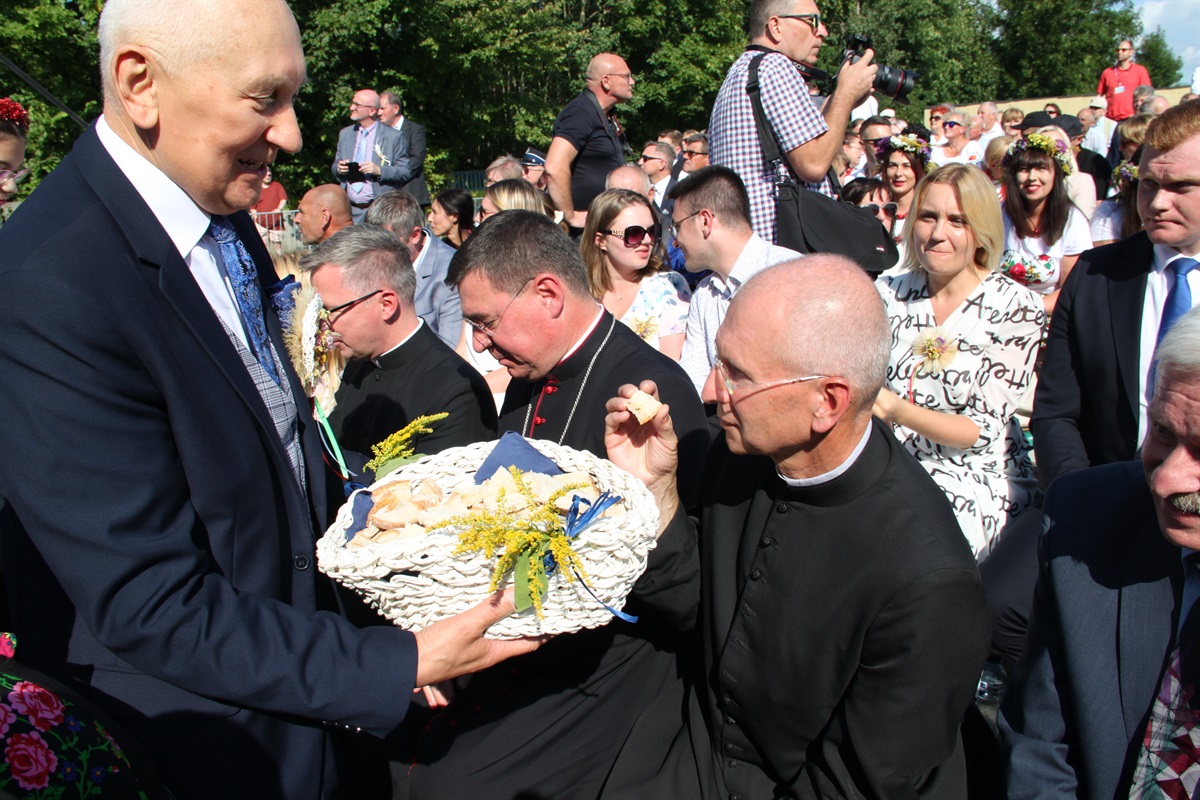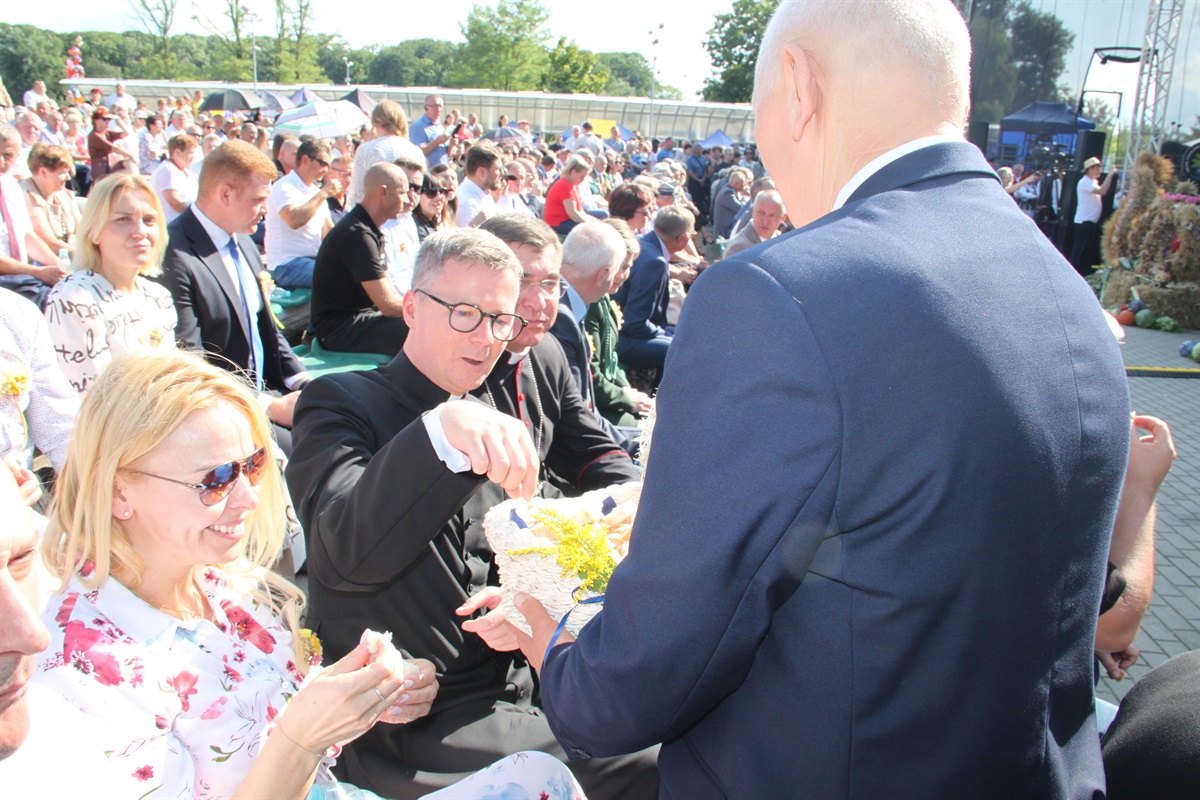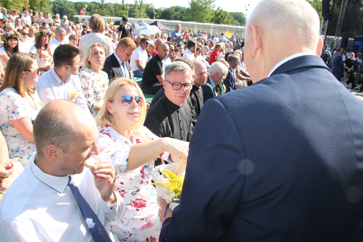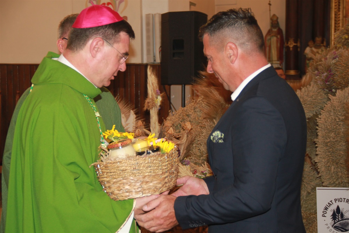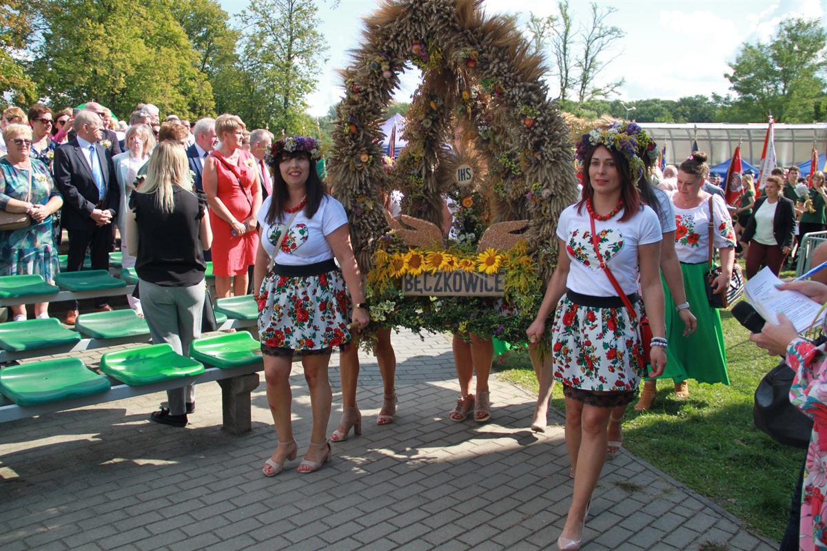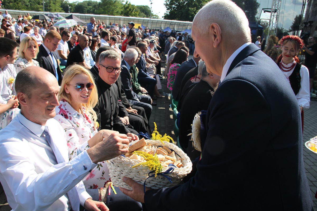 Starosta wraz przewodniczącym Rady Powiatu Bernardem Matyszewskim i wicestarostą Dariuszem Magaczem odebrali od Sołectwa Barkowice dożynkowy wieniec, a dla wójta Moszczenicy i przewodniczącej Rady Gminy Małgorzaty Domańskiej wieniec przygotowało Koło Gospodyń Wiejskich z Kiełczówki.- Dożynki to wielkie święto dziękczynienia, kiedy to dziękujemy wszystkim osobom, którym zawdzięczamy świeży chleb na naszym piotrkowskim stole. Ten rok był wyjątkowo trudny dla rolników, tym bardziej jest za co dziękować. W imieniu samorządu powiatu piotrkowskiego chcę podziękować rolnikom za ten chleb, za umiłowanie ziemi, a także wszystkim kołom gospodyń wiejskich i zespołom ludowym, które sprawiły nam tutaj wielką niespodziankę. To wspaniała kultura ziemi piotrkowskiej, to wszystko stanowi jej piękno - mówił starosta powiatu piotrkowskiego Piotr Wojtysiak.