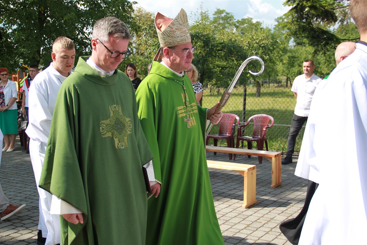 Tłumy mieszkańców przybyły do Moszczenicy na Powiatowo-Gminno-Parafialne Moszczenica 2023. Święto plonów rozpoczęła dziękczynna msza święta w parafii pw. Podwyższenia Świętego Krzyża w Moszczenicy, odprawiona przez ks. bpa Marka Marczaka biskupa pomocniczego archidiecezji łódzkiej, w asyście ceremoniarza archidiecezji ks. Huberta Kempińskiego i proboszcza moszczenickiej parafii ks. Włodzimierza Pasia.