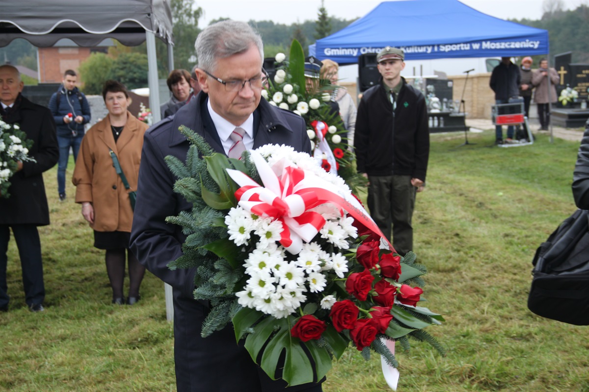 - Wspominamy tragiczne wydarzenie w dziejach naszego narodu, które wydarzyło się tutaj, w moszczenickim lesie podczas II wojny światowej. Niemiecki okupant wymordował grupę polskich patriotów. To miejsce jest znakiem czasu, o którym zawsze powinniśmy pamiętać i każdemu przypominać, a w szczególności młodzieży. Bezsens wojny i bestialskie zachowanie hitlerowskich oprawców sprawiły, że przywiezieni tutaj ludzie kończyli swoje życie w dramatycznych warunkach. Dopiero po kilkudziesięciu latach doczekali się godnego pochówku. A my spotkaliśmy się tutaj, aby uczcić ich pamięć i oddać im hołd - mówi podczas okolicznościowych przemówień Marceli Piekarek, wójt gminy.