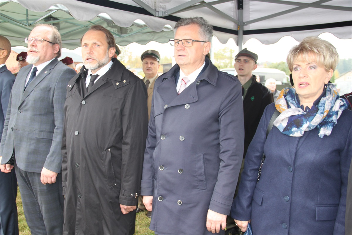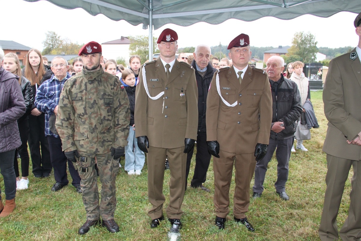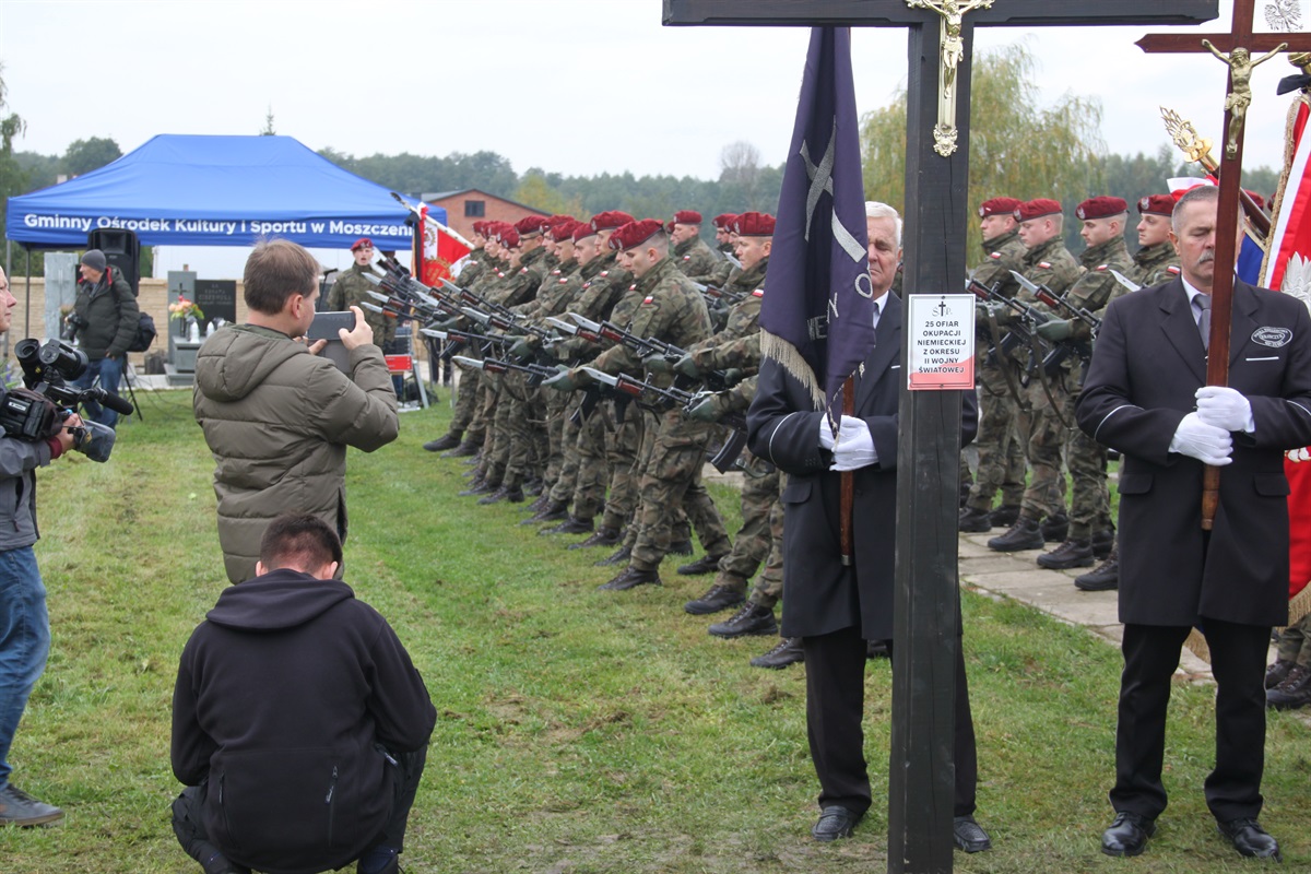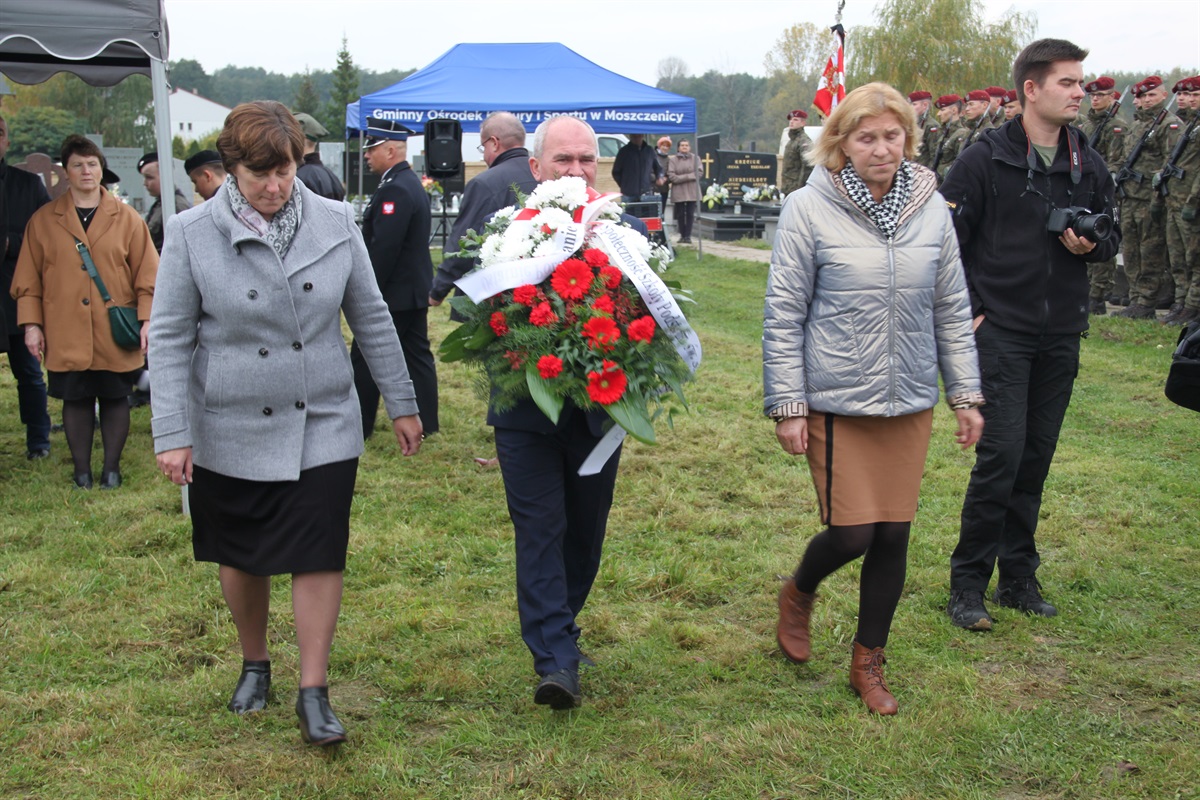 Uroczystość odbyła się zgodnie z ceremoniałem wojskowym. Wzięli w niej udział poseł na Sejm Grzegorz Lorek, wicestarosta powiatu piotrkowskiego Dariusz Magacz, wójt gminy Moszczenica Marceli Piekarek, przewodnicząca Rady Gminy Małgorzata Domańska, sekretarz gminy Agata Biesaga. Andrzej Nitek, prezes Stowarzyszenia Dziedzictwa Kultury Piotrkowskiej, przedstawiciele Wojska Polskiego, Nadleśnictwa Piotrków, Ochotniczych Straży Pożarnych, lokalnych instytucji i stowarzyszeń stowarzyszeń, młodzież szkolna, harcerze i mieszkańcy Moszczenicy.