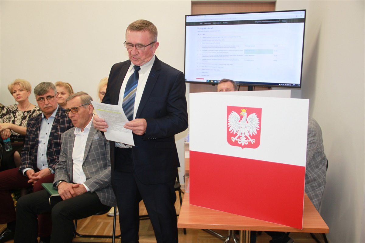 Pierwszą sesję Rady Gminy nowej kadencji otworzył radny - senior Waldemar Banaszczyk. Po złożeniu ślubowania przez radnych, wybrano prezydium Rady Gminy. Przewodniczącą została Iwona Jarosińska, wiceprzewodniczącymi: Agnieszka Lewandowska i Adrian Wojtysiak.