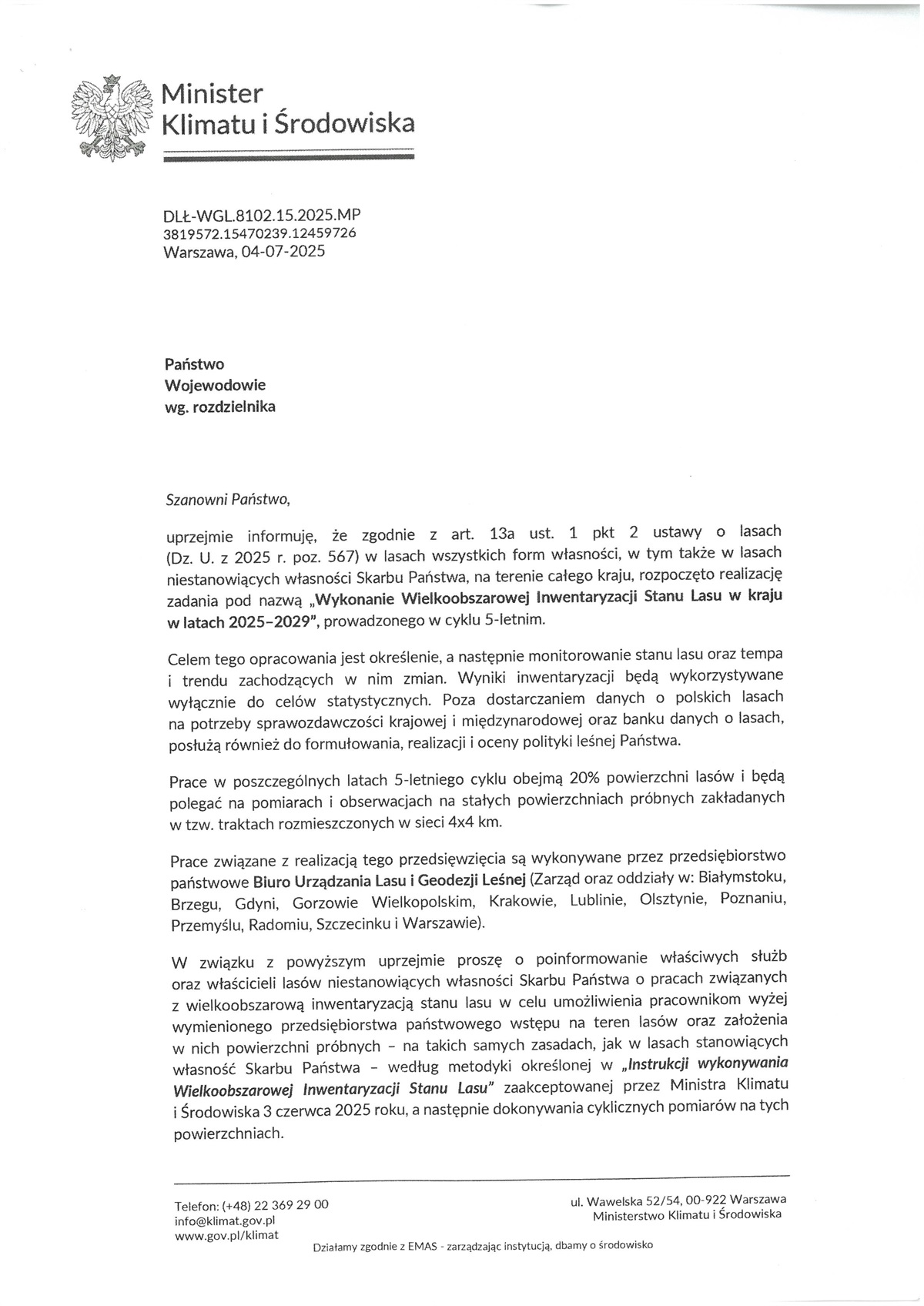 W załączeniu pismo z dnia 4 lipca br. znak: DLŁ-WGL.8102.15.2025.MP