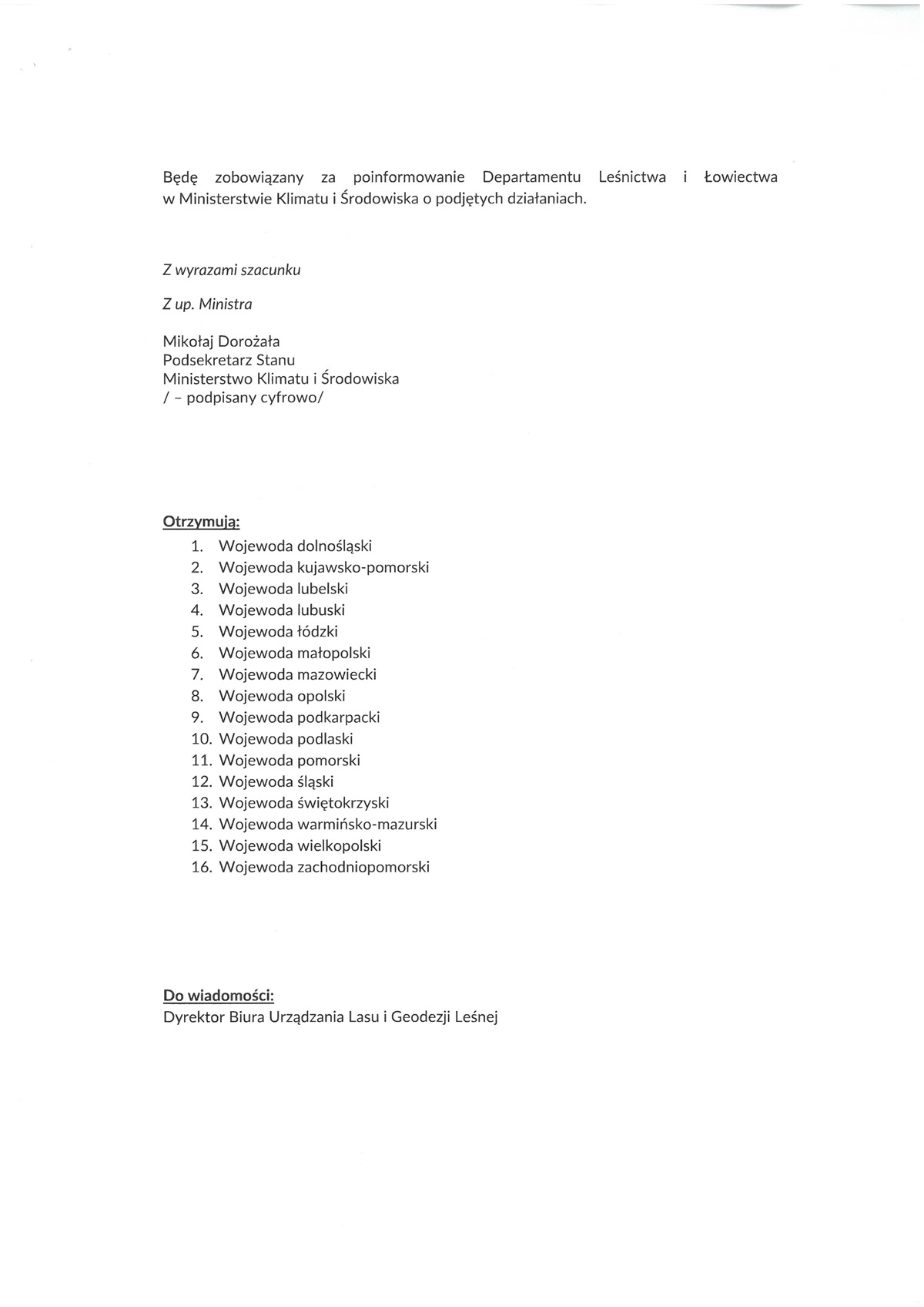 Zwracamy się z prośbą do właścicieli lasów niestanowiących własności Skarbu Państwa o umożliwienie pracownikom wyżej wymienionego przedsiębiorstwa wstępu na teren lasów oraz wykonania przez nich pomiarów.