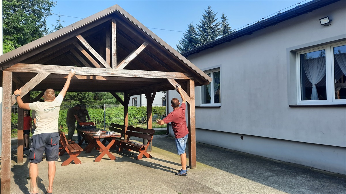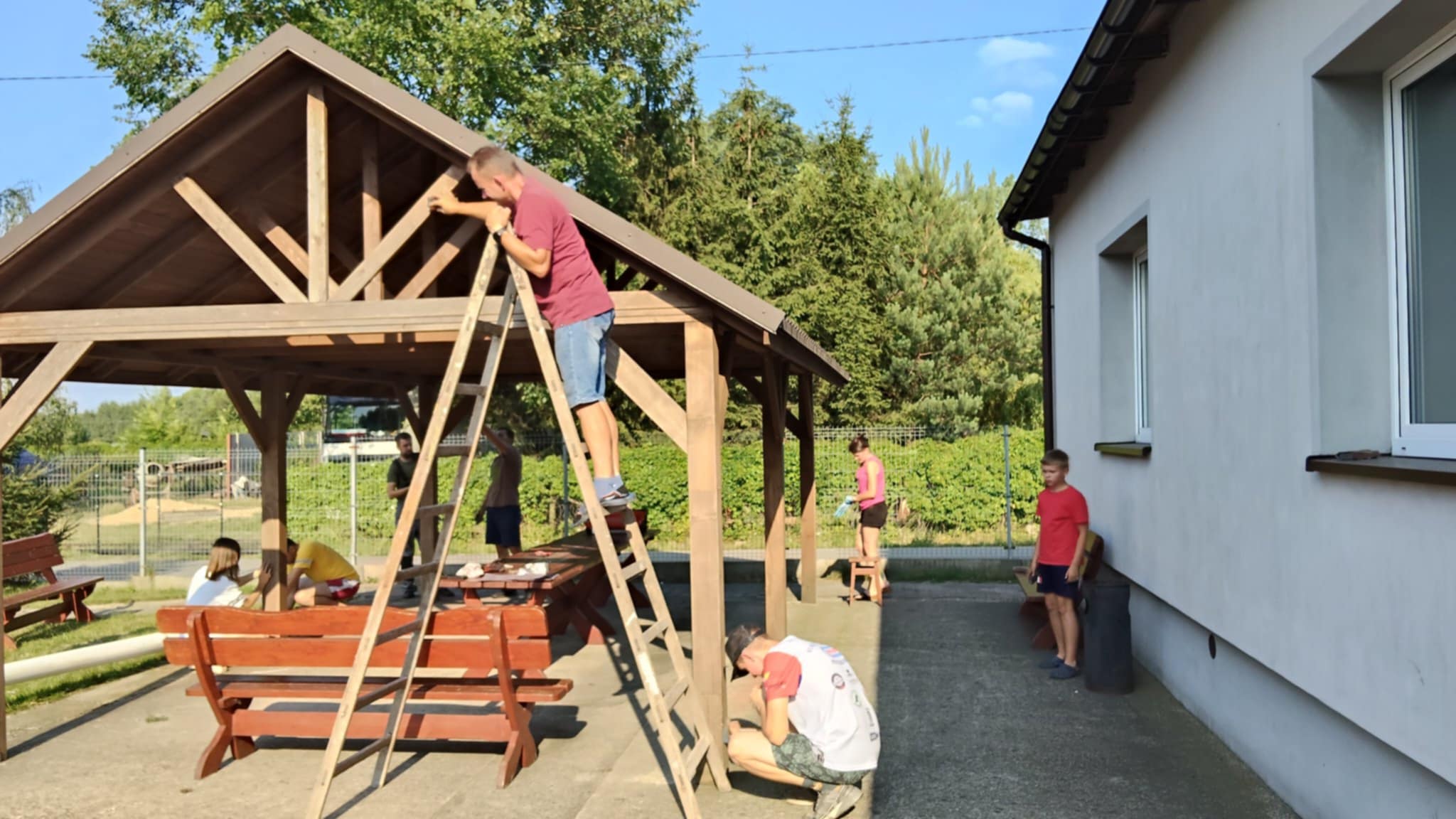 W ramach powstającego placu zabaw przy OSP w Jarostach (etap IV), zamontowano tyrolkę. Zakupiono materiały i akcesoria do pomalowania altany i ławek znajdującej się na placu OSP.