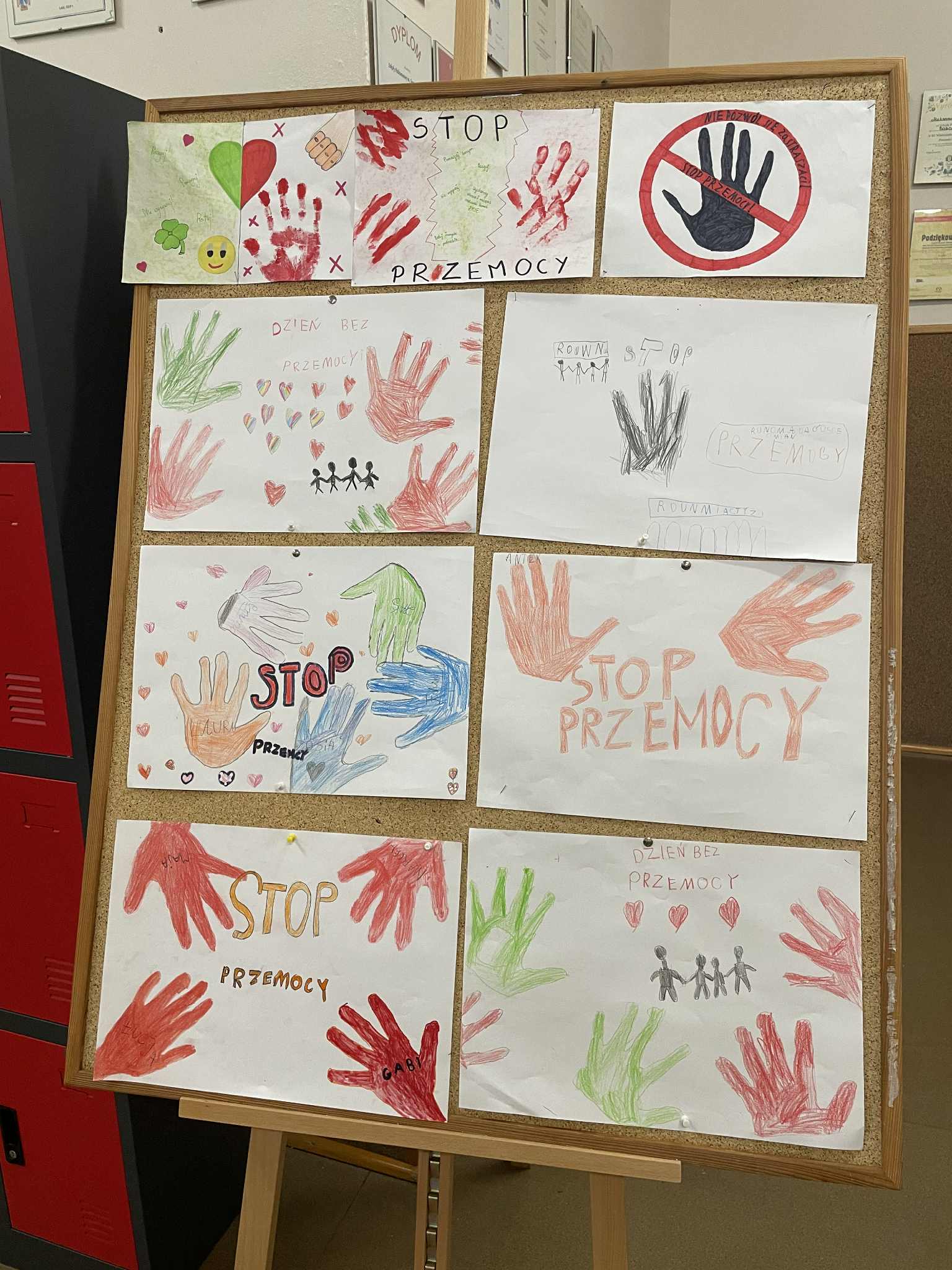 • Plakaty i hasła – uczniowie przygotowali kolorowe plakaty i hasła promujące życzliwość, empatię i współpracę, które ozdobiły drzwi sal lekcyjnych.