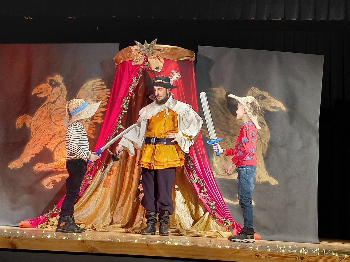 Publiczność – zarówno dzieci, jak i dorośli – miała także okazję obejrzeć barwne przedstawienie Teatru Wariacje, który zabrał widzów w świat trzech muszkieterów. Niektórzy z widowni mieli również okazję zagrać w przedstawieniu. Spektakl dostarczył wielu emocji, śmiechu i wzruszeń, tworząc wyjątkową atmosferę wieczoru.