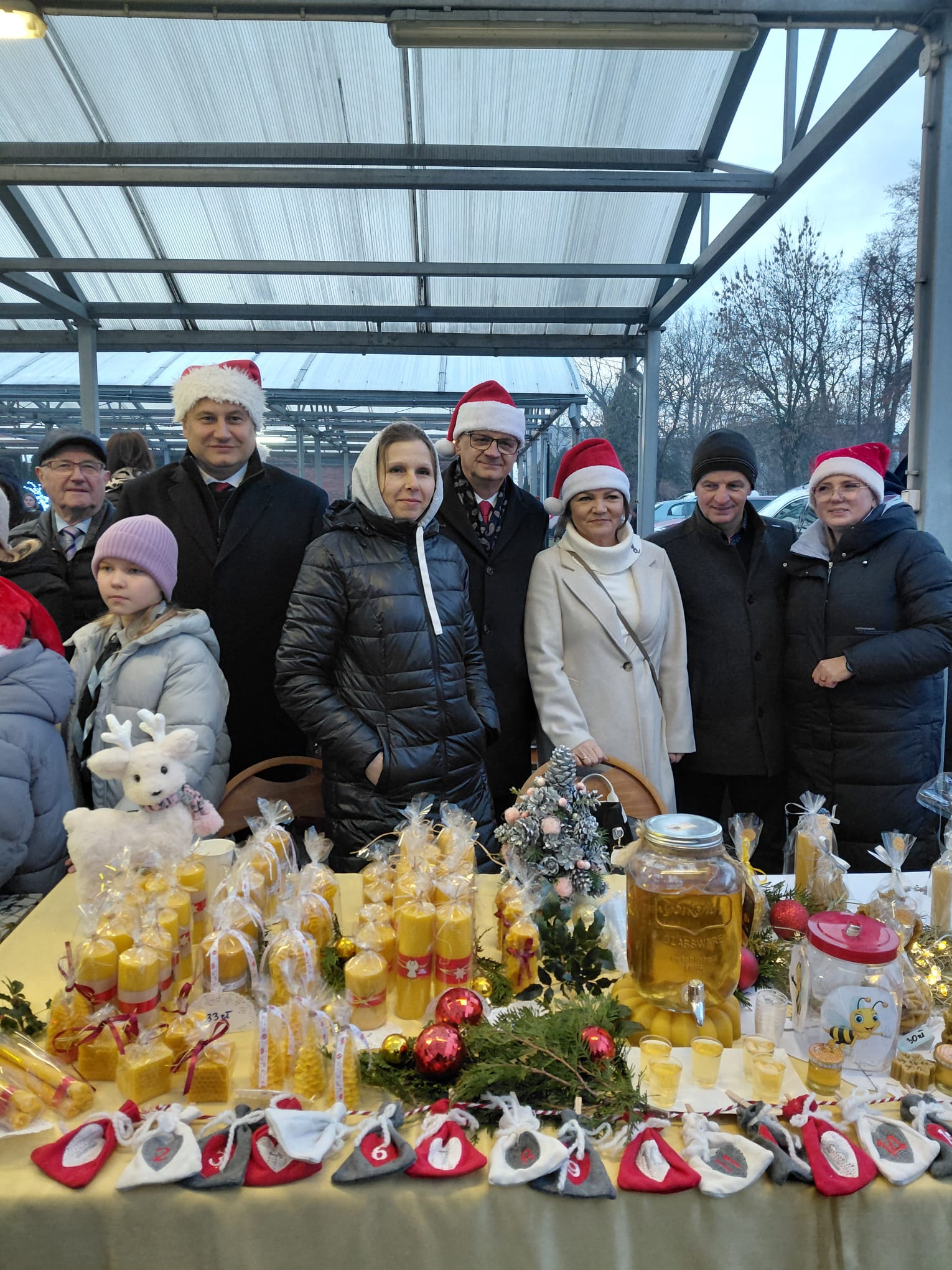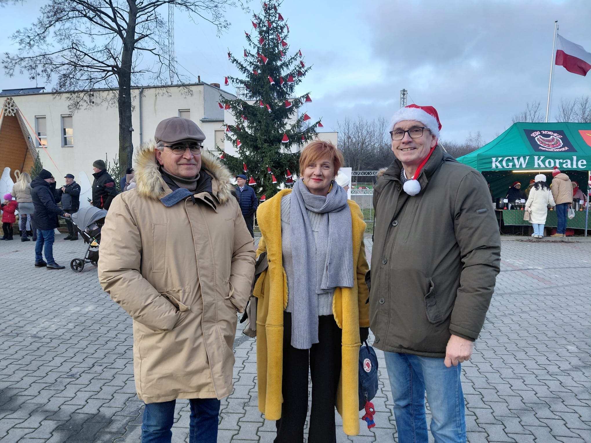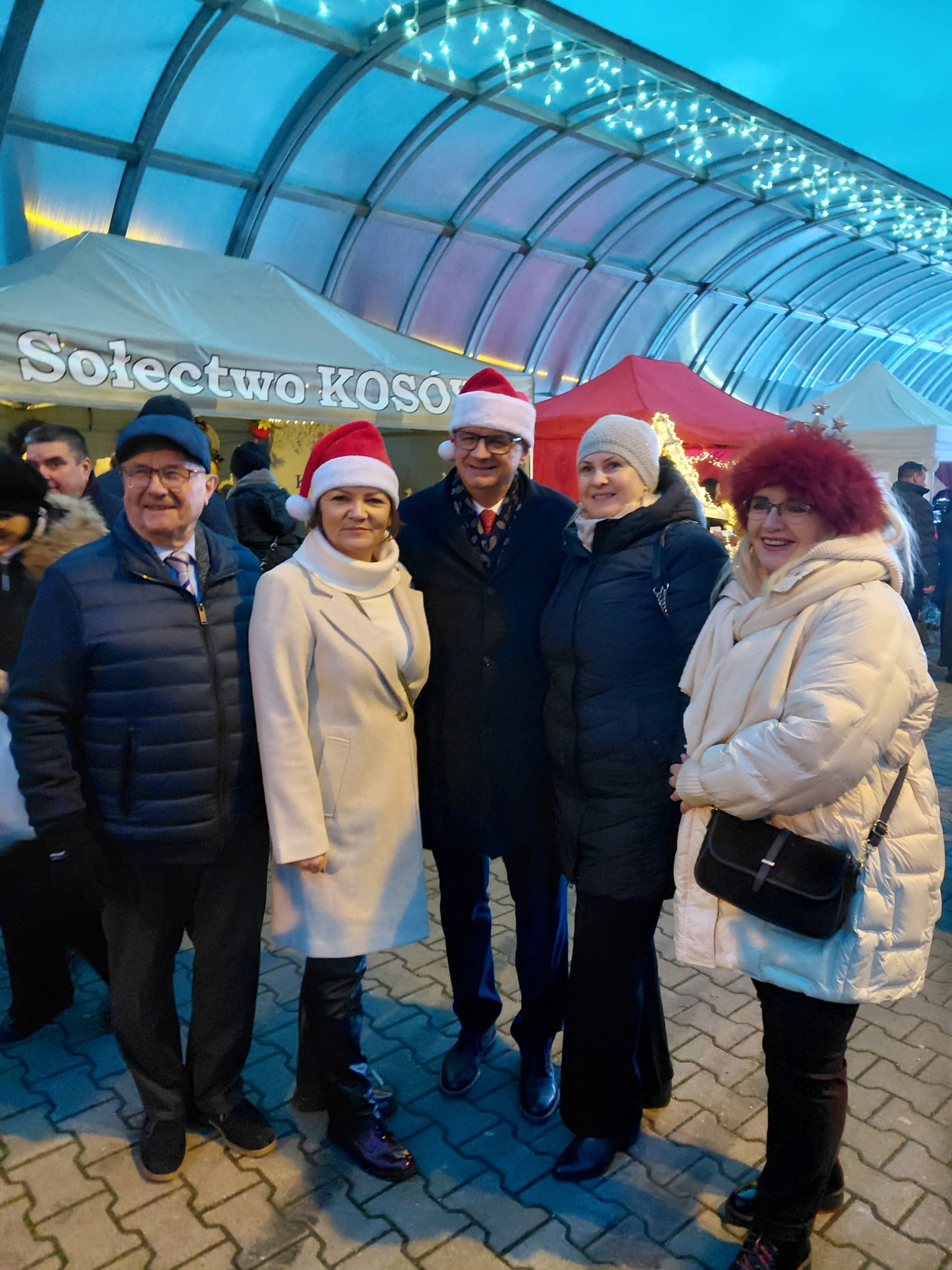 Gmina Moszczenica gościła na jarmarku Wójta Gminy Szczerców Krzysztofa Kamieniaka oraz Prezesa Wojewódzkiego Funduszu Ochrony Środowiska i Gospodarki Wodnej Piotra Kopka z małżonką, którzy razem z Wójtem Gminy Moszczenica oraz Przewodniczącą Rady Gminy odwiedzili namiot Świętego Mikołaja oraz stoiska KGW.