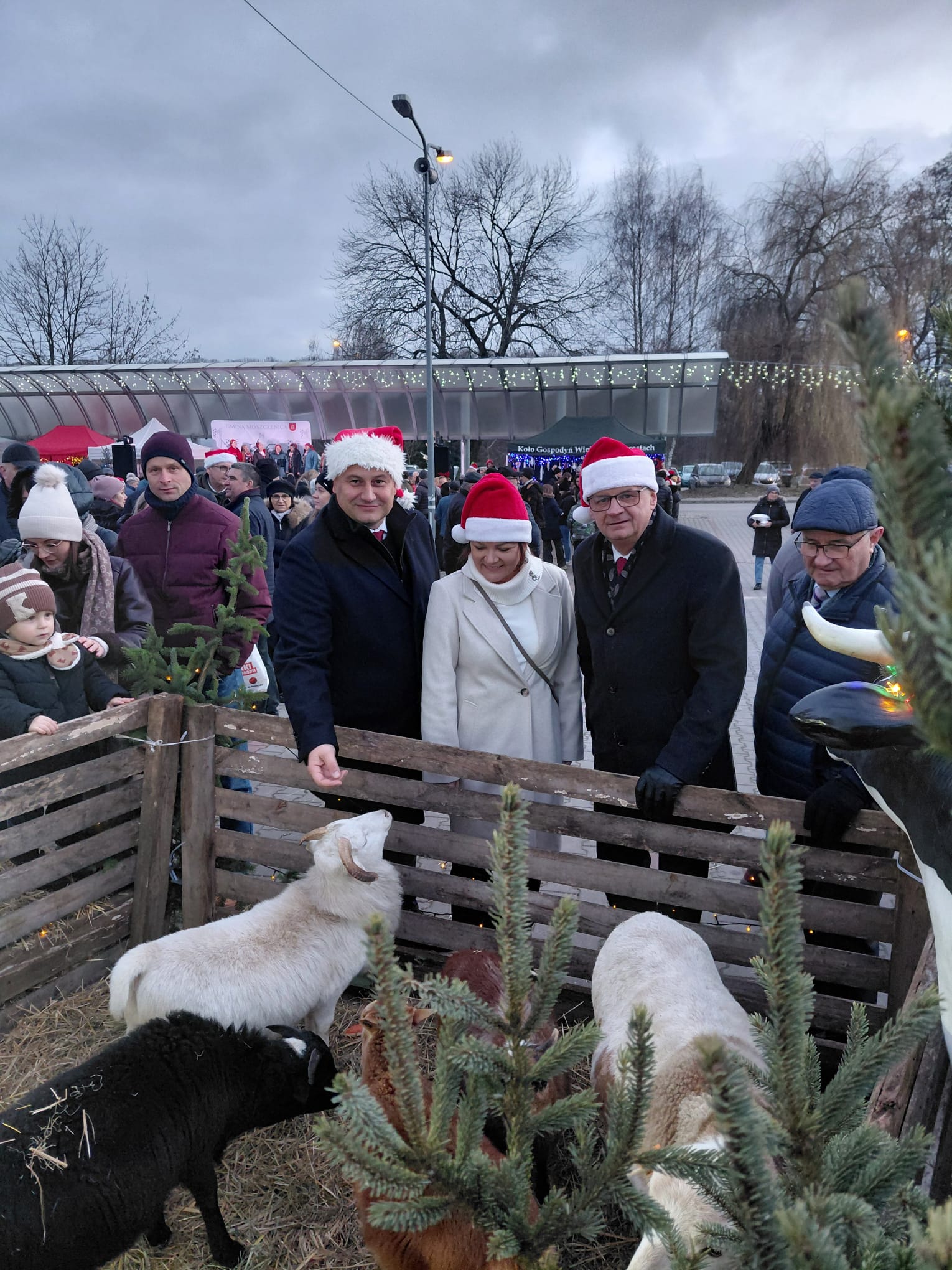 Przygotowano liczne stoiska, na których można było skosztować tradycyjnych świątecznych potraw przyrządzonych przez Koła Gospodyń Wiejskich Gminy Moszczenica, a także zakupić rękodzieło, dekoracje i prezenty oferowane przez KGW, Szkoły Podstawowe z terenu gminy, harcerzy oraz WZT „Kubusie”. Na najmłodszych w namiocie czekał Święty Mikołaj z prezentami i słodyczami. Ogromną atrakcją była szopka, w której można było pogłaskać żywe zwierzęta.