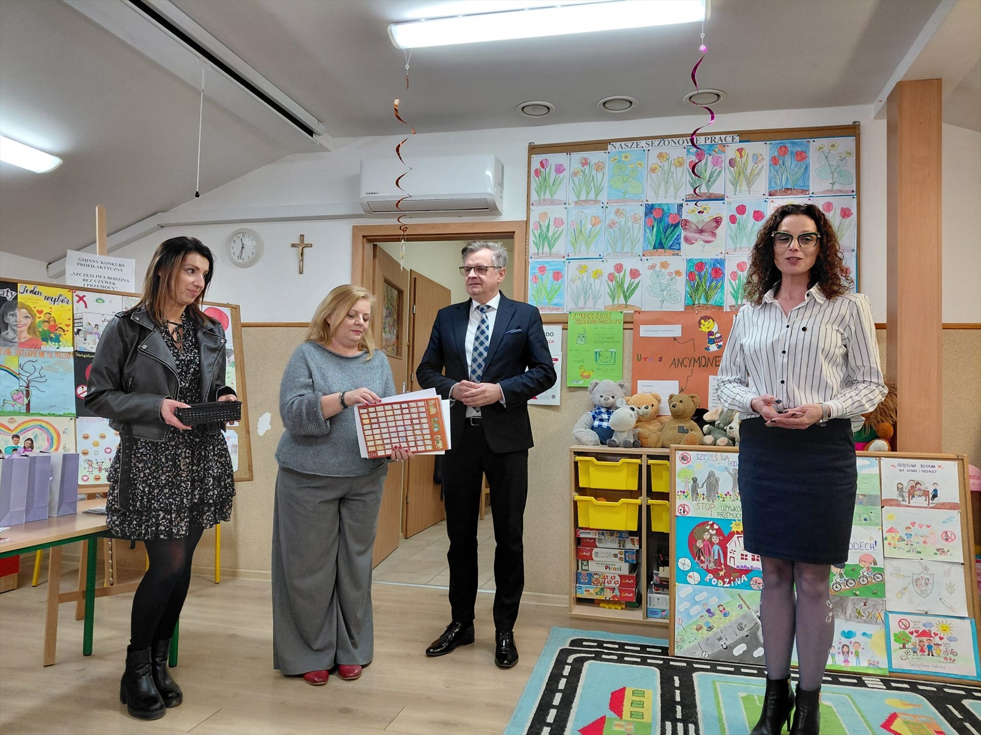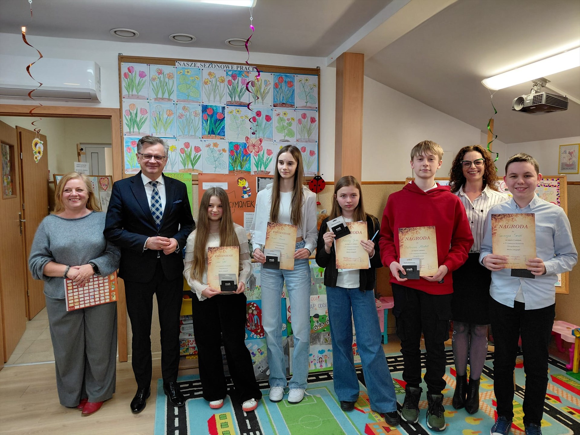 W pracach komisji konkursowych uczestniczyli również nauczyciele: polonistka i historyk P. Iwona Jędrzejczyk oraz nauczycielka wychowania przedszkolnego P. Faustyna Piasecka z naszej szkoły oraz Pani Marta Malinowska, polonista ze Szkoły Podstawowej w Srocku.