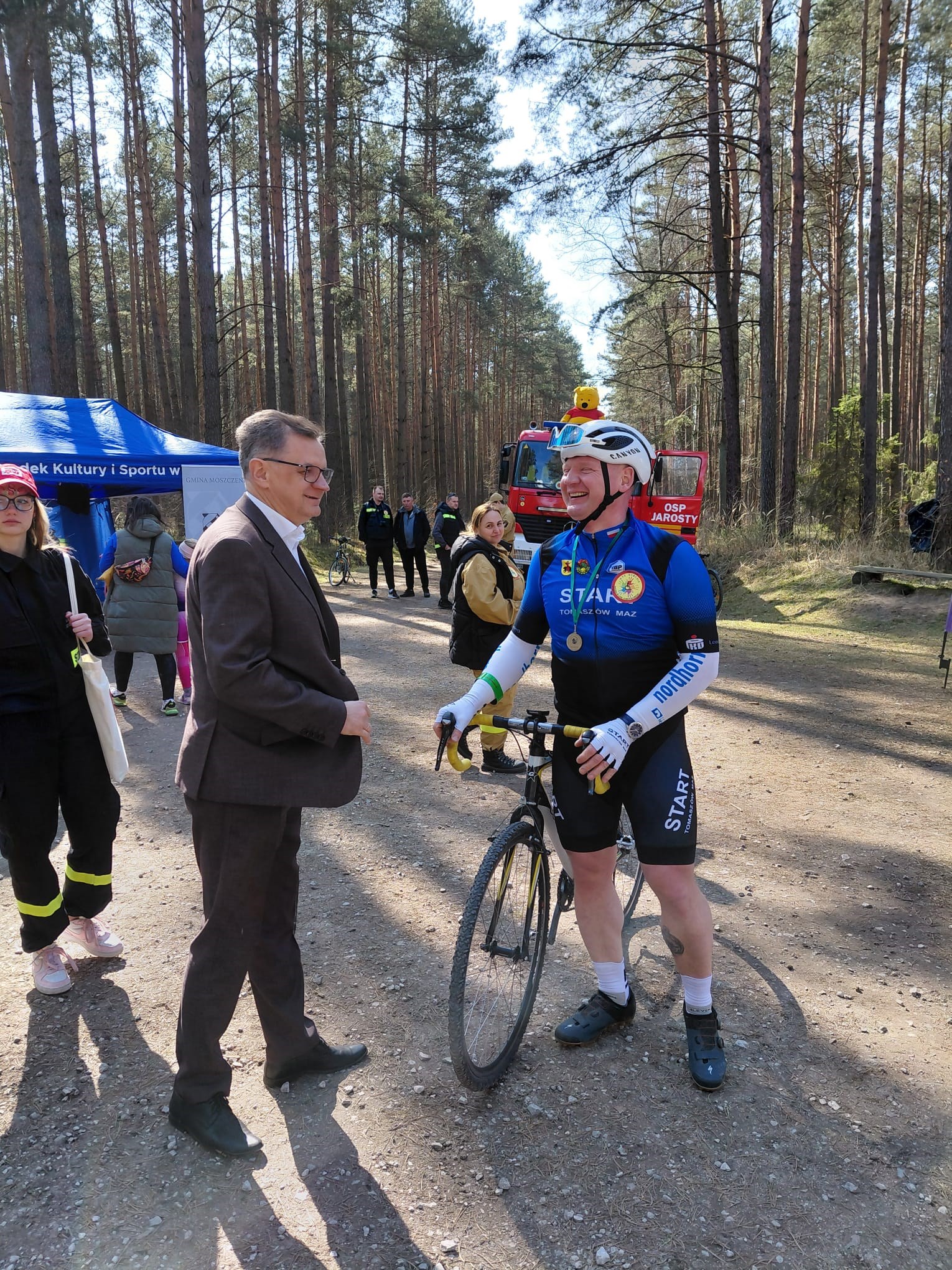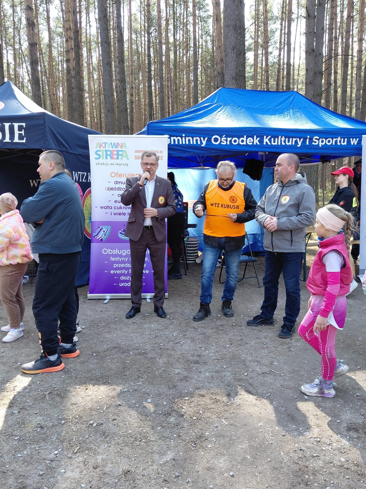 W wydarzeniu udział wziął Dariusz Magacz - Wójt Gminy Moszczenica , który razem z Kubusiem wystartował 🚩, a następnie witał wszystkich na mecie 🏁, gratulując ukończenia trasy i wspierając uczestników swoją obecnością 👏