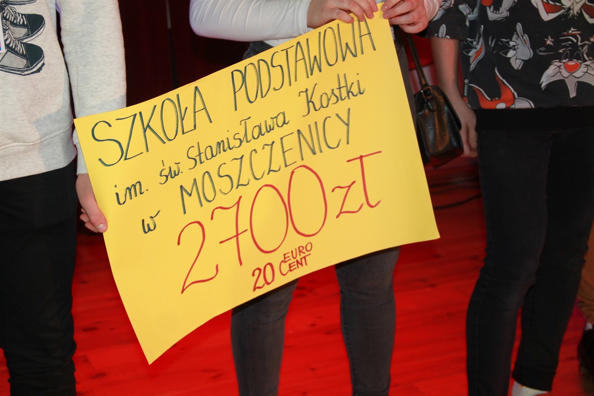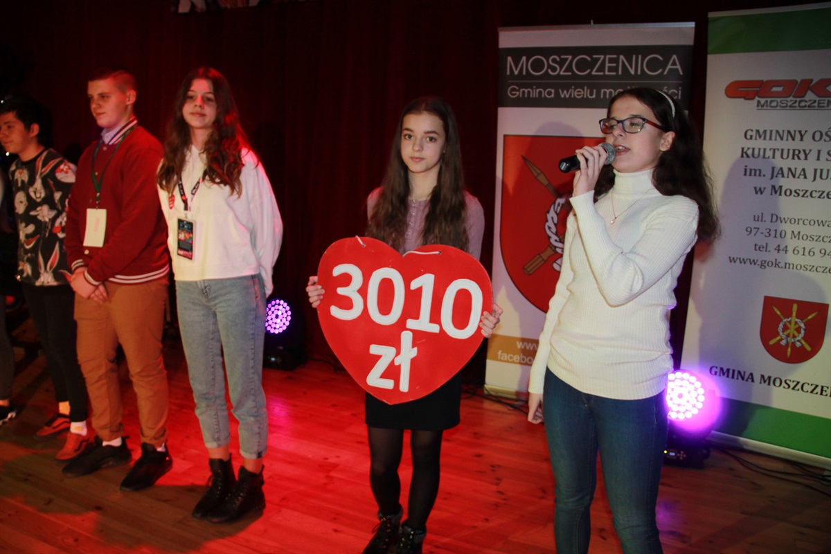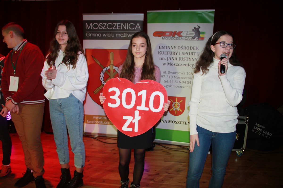 Podczas 28. finału Wielkiej Orkiestry Świątecznej Pomocy w sztab w Moszczenicy zebrał 32 tysiące 20 złotych i 71 groszy (w tym 7 tysięcy 583 zł 46 groszy zebrano w Gminnym Ośrodku Kultury w Woli Krzysztoporskiej).