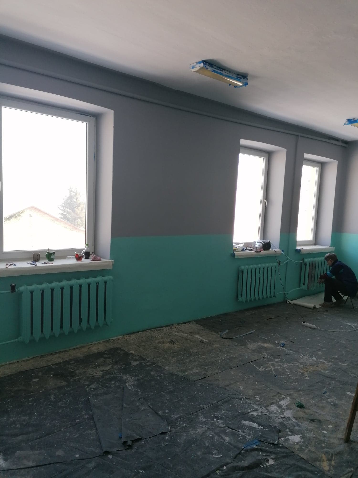 Środki własne pozwoliły nam na położenie nowej podłogi, zakup i montaż wykładziny, malowanie sali.
