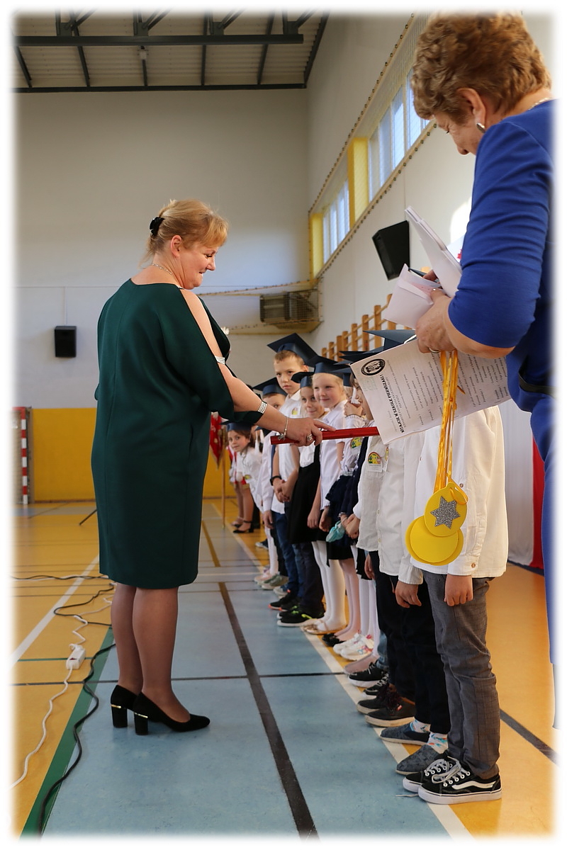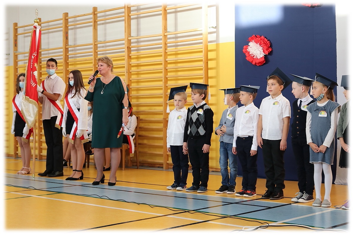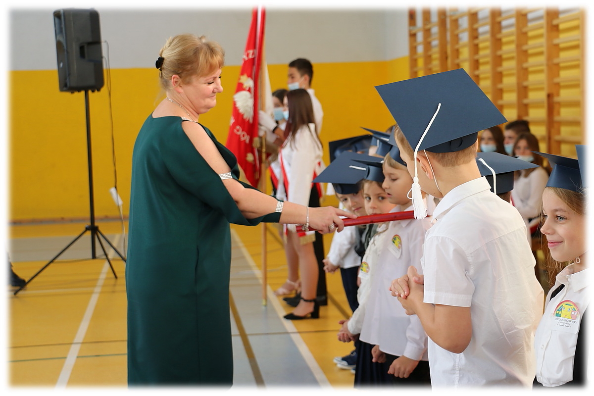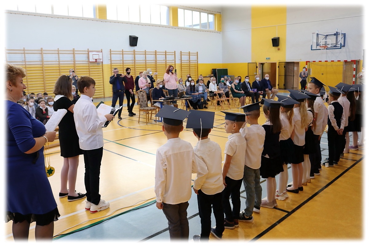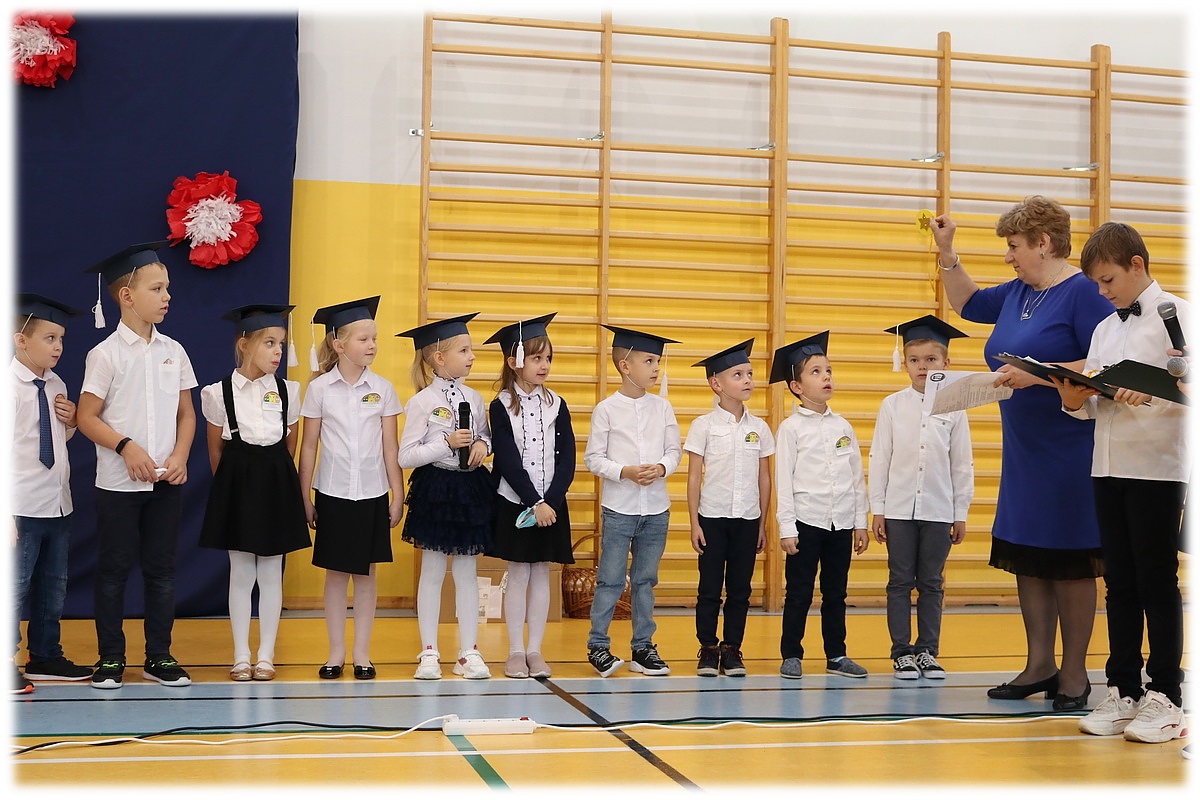 - Pierwszaki otrzymały wiele upominków, wśród których znalazły się śliczne zakładki do książek podarowane, zgodnie z tradycją szkolną, przez uczniów oddziału II oraz słodycze od przedstawicieli organu prowadzącego i rodziców - mówi dyrektor szkoły Bożena Nowak-Justyna, która dokonała oficjalnego pasowania na ucznia.