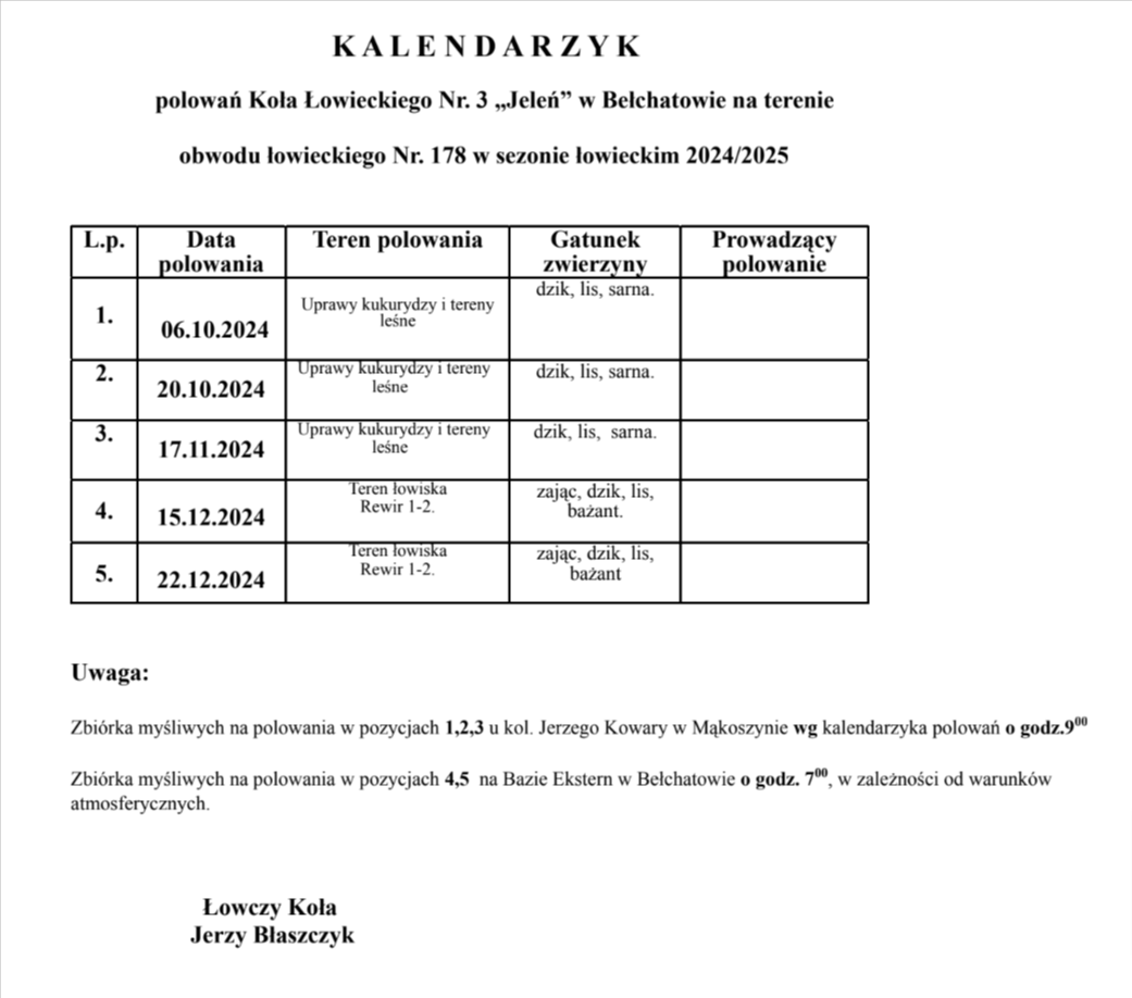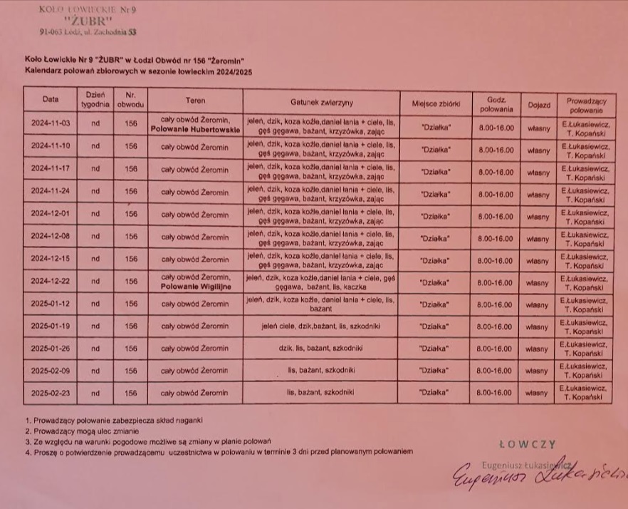 Na poniższych grafikach udostępniamy plany łowieckie Kół Łowieckich Żubr i Jeleń.
