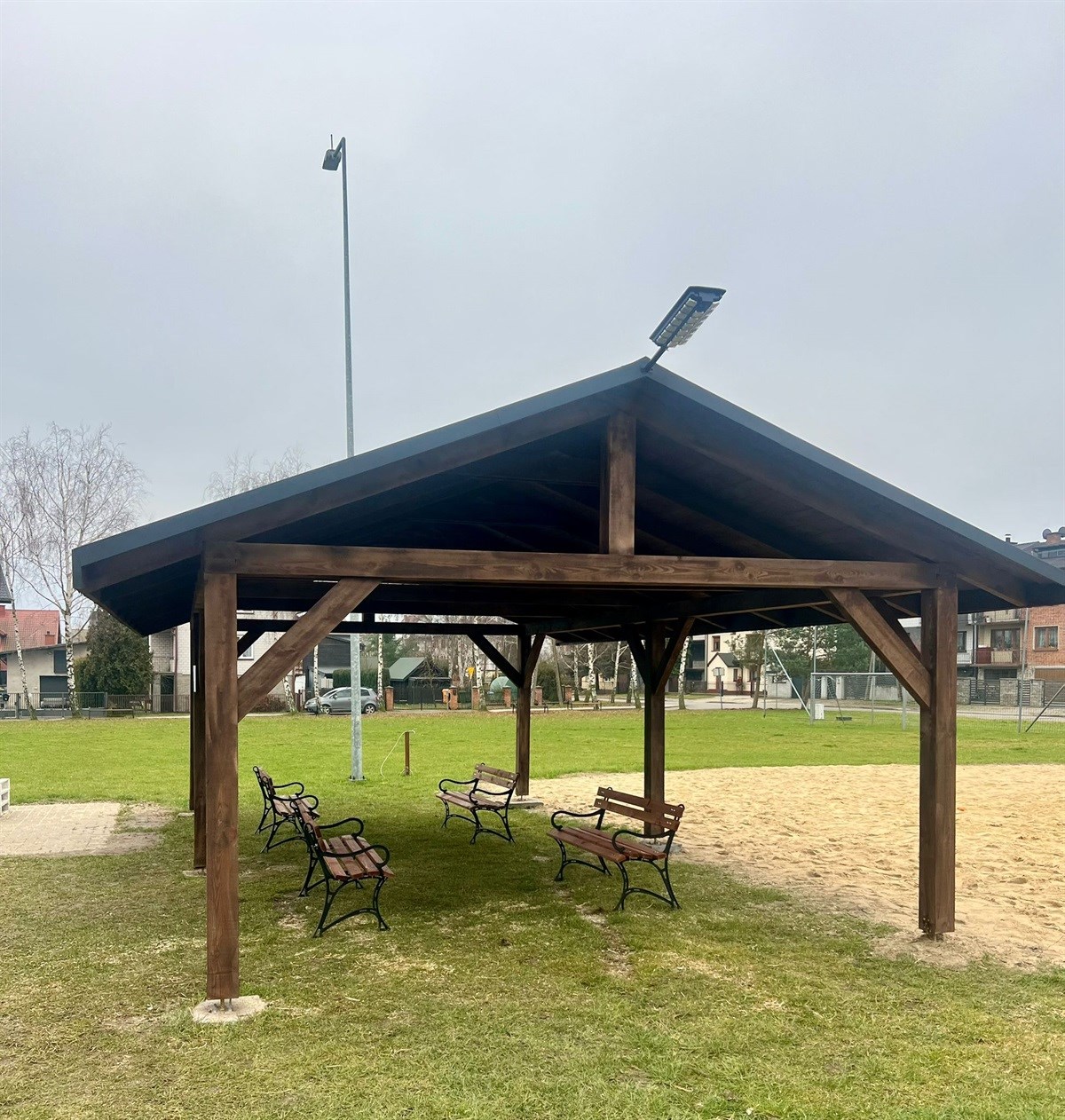 W ramach projektu wybudowano altanę oraz zakupiono 4 ławki i oświetlenie LED