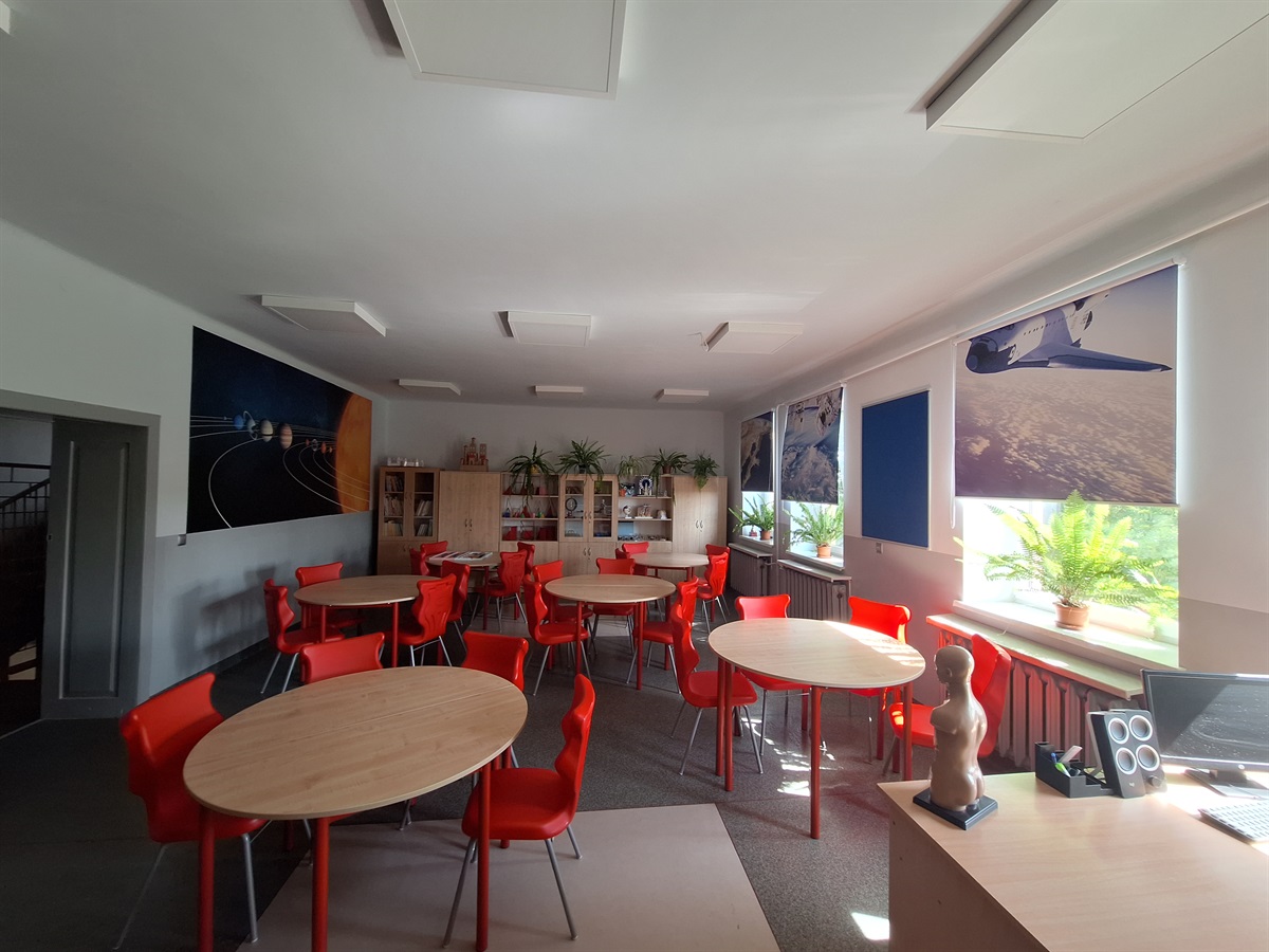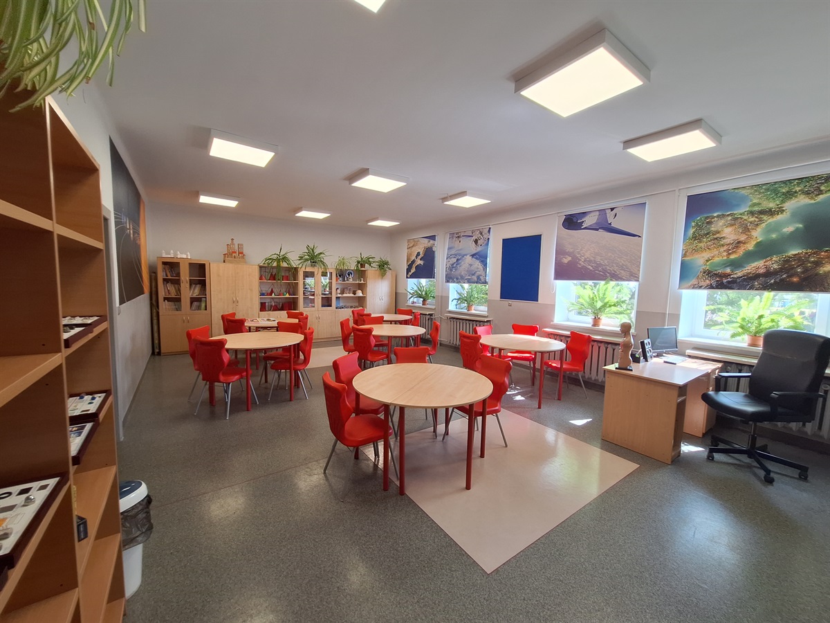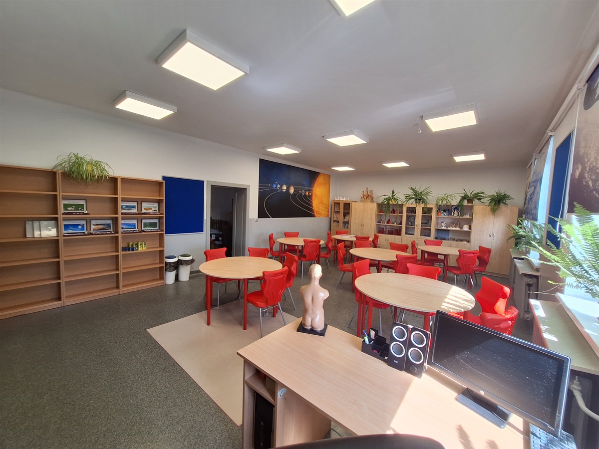 Sala wyposażona została w nowoczesne sprzęty multimedialne: monitor interaktywny, mikroskop stereoskopowy, atlasy multimedialne, nowoczesne meble, liczne modele i preparaty, kolekcje okazów, zestawy do nauczania fizyki, chemii i geografii oraz wiele innych pomocy dydaktycznych.